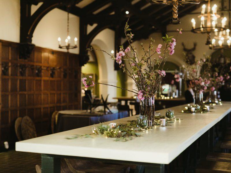 The colorful Mill Room was once the private dining room of August Busch Sr. Inside the hexagonal room are two large murals made from painted Austrian tile, and were on display at the Paris Exposition in 1898. The Mill Room’s tile floor was restored to show the detail of the textured tile. The Mill Room rental can include the Bierhall, or serve as an intimate space for a micro wedding. It makes for a great ceremony location or a dance floor, or BOTH!