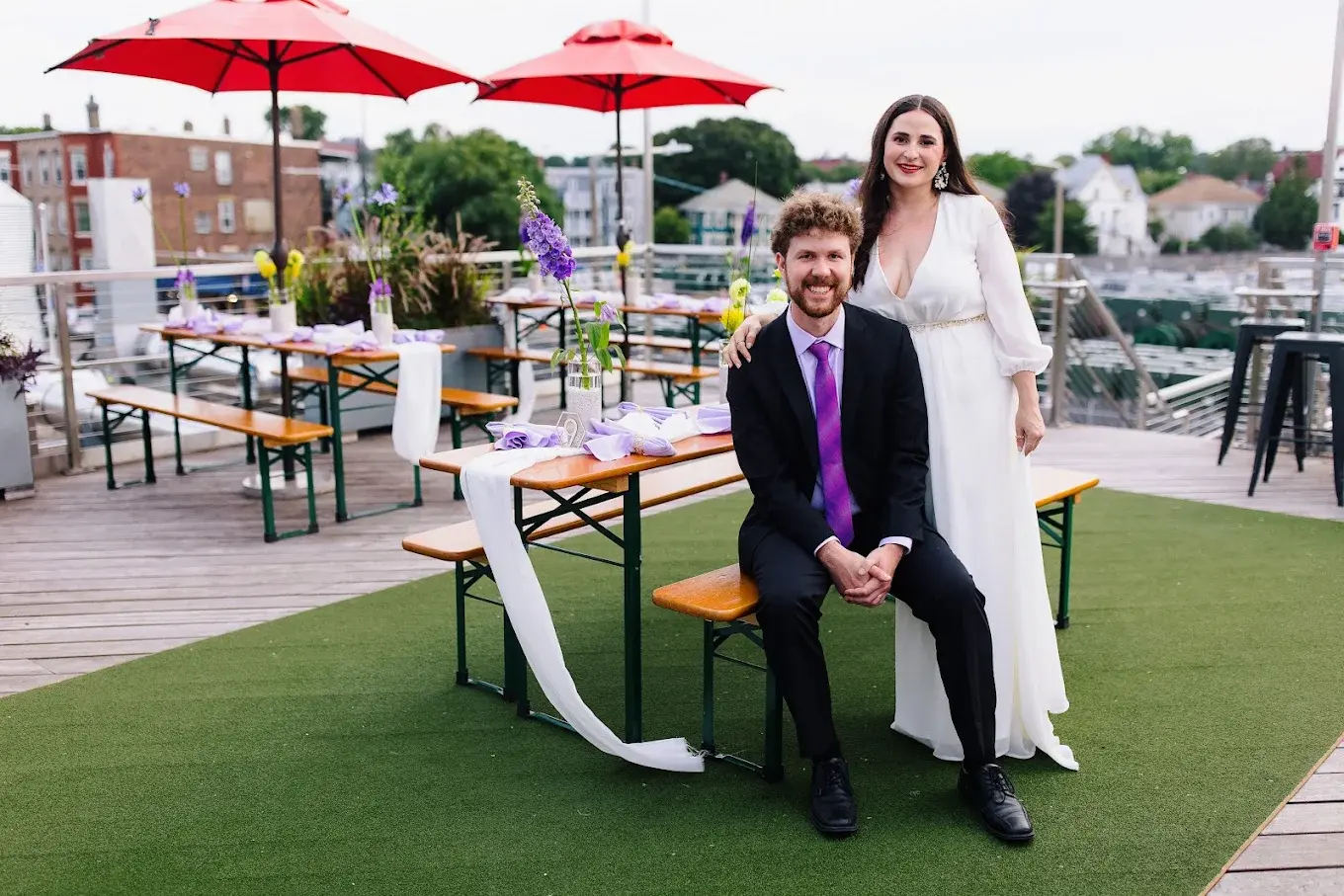 Celebrate your love at Dorchester Brewing Co., a vibrant, modern taproom in the heart of Boston designed for couples seeking a non-traditional, high-energy atmosphere. Whether you’re planning a casual rehearsal dinner, a lively welcome party, or a full wedding reception, this venue offers a refreshing alternative to standard banquet halls. With a commitment to "no wedding tax," the brewery provides a stunning backdrop of city views, exceptional craft beer and cocktails, and mouthwatering onsite catering from M&M BBQ. It’s the perfect blend of industrial-chic style and welcoming community spirit for your big day. Our Hopservatory was designed like an indoor greenhouse with floor to ceiling windows. We also have a gorgeous roof deck attached to the Hopservatory that overlooks the Boston skyline. We were awarded one of the Top 10 Beer Gardens in America in 2025 by Food and Wine Magazine. It's the perfect backdrop for your wedding!