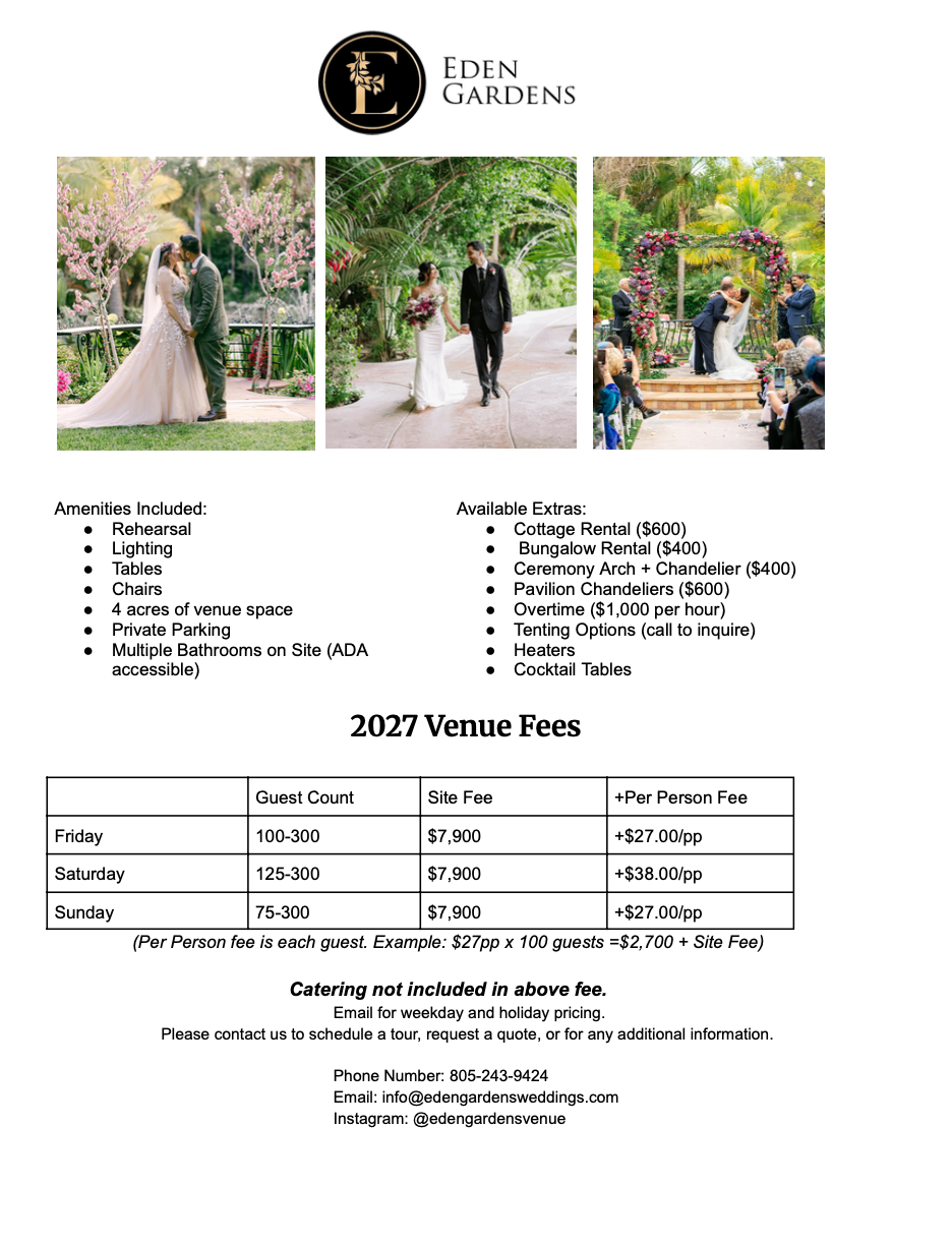 We couldn’t be happier with our experience at Eden Gardens. From the very first meeting, their team went above and beyond to make us feel supported and heard throughout the entire planning process. Every person we interacted, the coordinators, the venue staff, and the catering team was very professional, warm, and truly invested in making our day unforgettable. The venue itself is stunning, lush, well maintained, and incredibly serene. On the day of our wedding, the staff handled everything seamlessly, allowing us to relax and be fully present with our guests. We are endlessly grateful for their care and dedication, and we couldn’t imagine having celebrated anywhere else. Eden Gardens was the perfect setting for the best day of our lives.