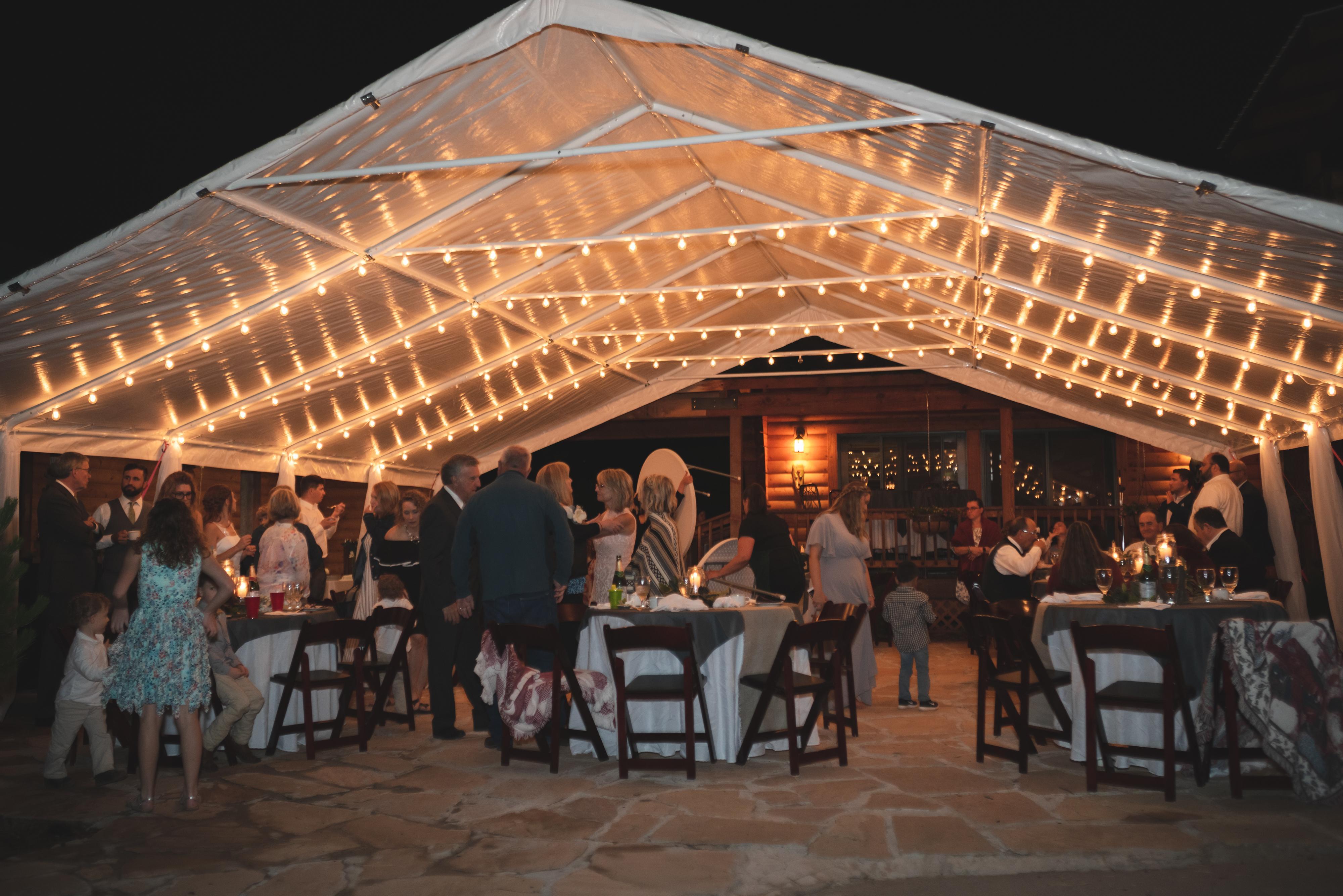 - 30’x30′ white canopy with linen-covered poles