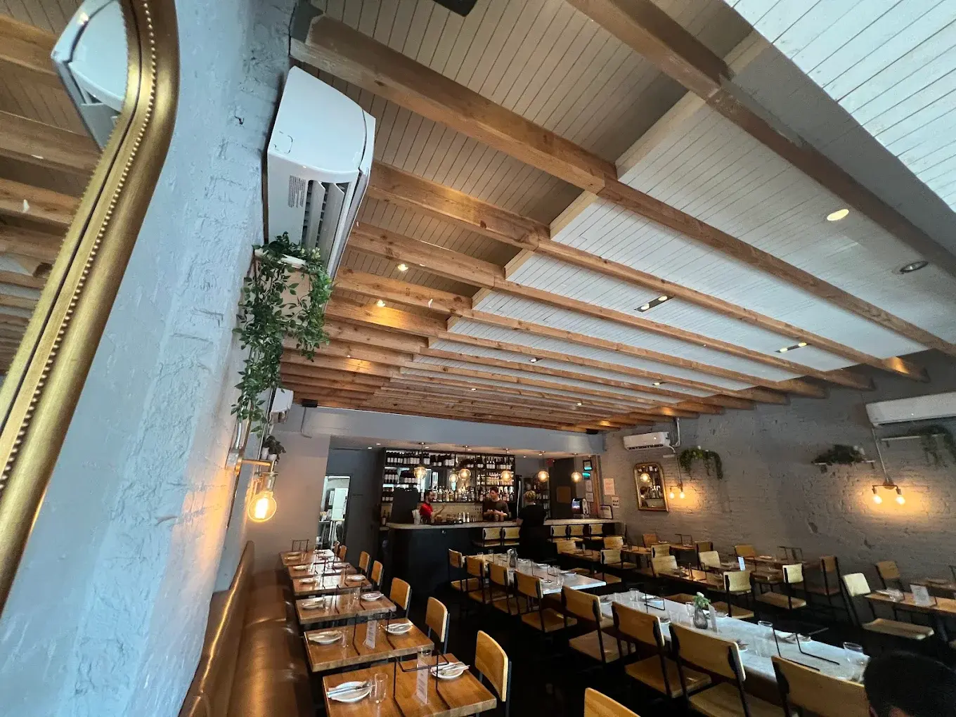The venue features a bi-level layout that offers both intimate and social settings. The upstairs dining room provides a cozy, dedicated space for large group feasts, while the downstairs area boasts a private bar and its own separate entrance for a truly exclusive feel. Modern, urban-chic design elements are complemented by large windows and a breezy outdoor terrace that captures the spirit of the Upper East Side. With a versatile floor plan that transitions seamlessly from seated family-style dinners to standing cocktail receptions, the space is designed for effortless hosting and unparalleled hospitality.