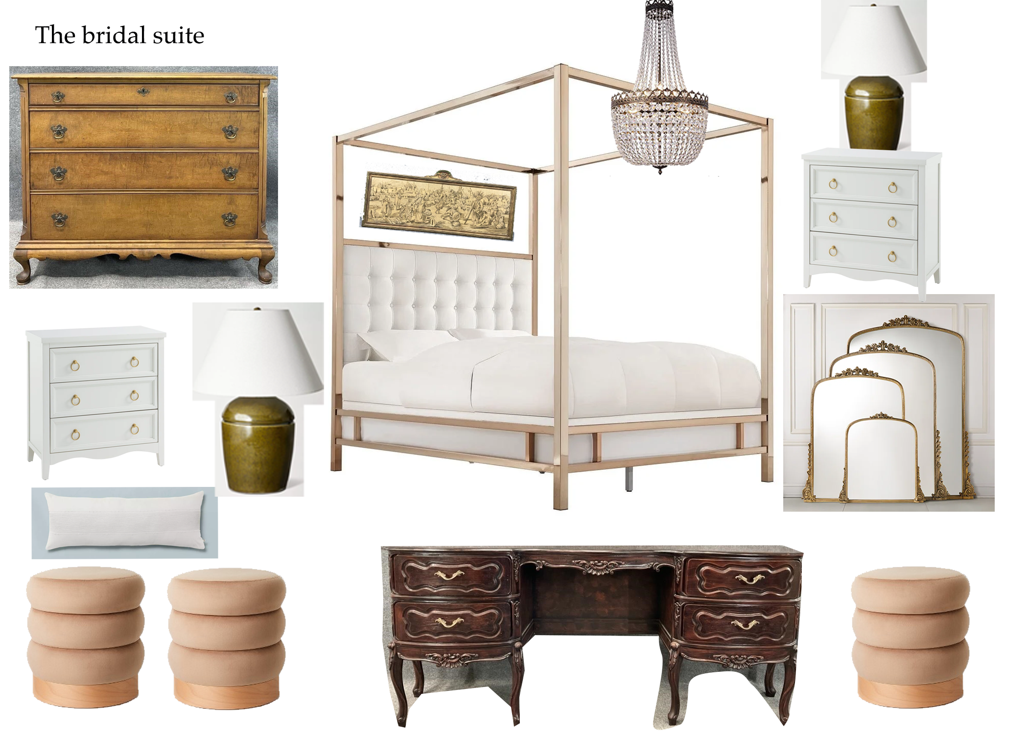 -Antique vanity w/ stool -King-size canopy bed -Extra rattan chairs for getting ready -Ensuite bathroom with shower -Antique dresser -Mirrors for getting ready