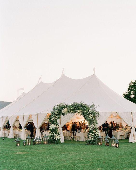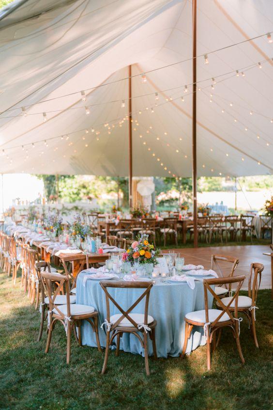 Surrounded by huge jasmine bushes, the garden in the back of the farmhouse is the perfect space to put up a tent for a wedding.