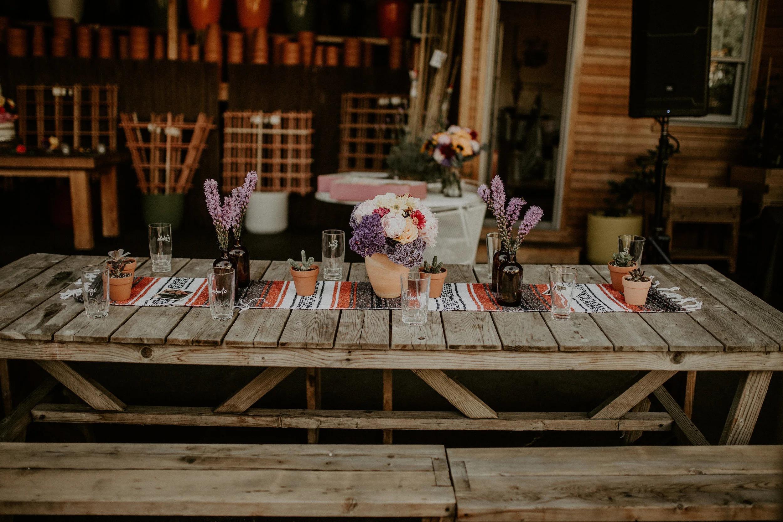 The venue features an expansive outdoor nursery that blends rustic charm with modern Los Angeles style. This versatile open-air space is characterized by towering plants, fruit trees, and seasonal blooms that create a living décor, minimizing the need for additional styling. The layout flows seamlessly from ceremony to celebration, anchored by custom-built farm tables and cozy garden lounge furniture. As the sun sets, overhead string lighting casts a warm, romantic glow over the garden, while the venue’s integrated audio system sets the mood. It is a flexible, atmospheric canvas designed for memorable gatherings under the California sky.