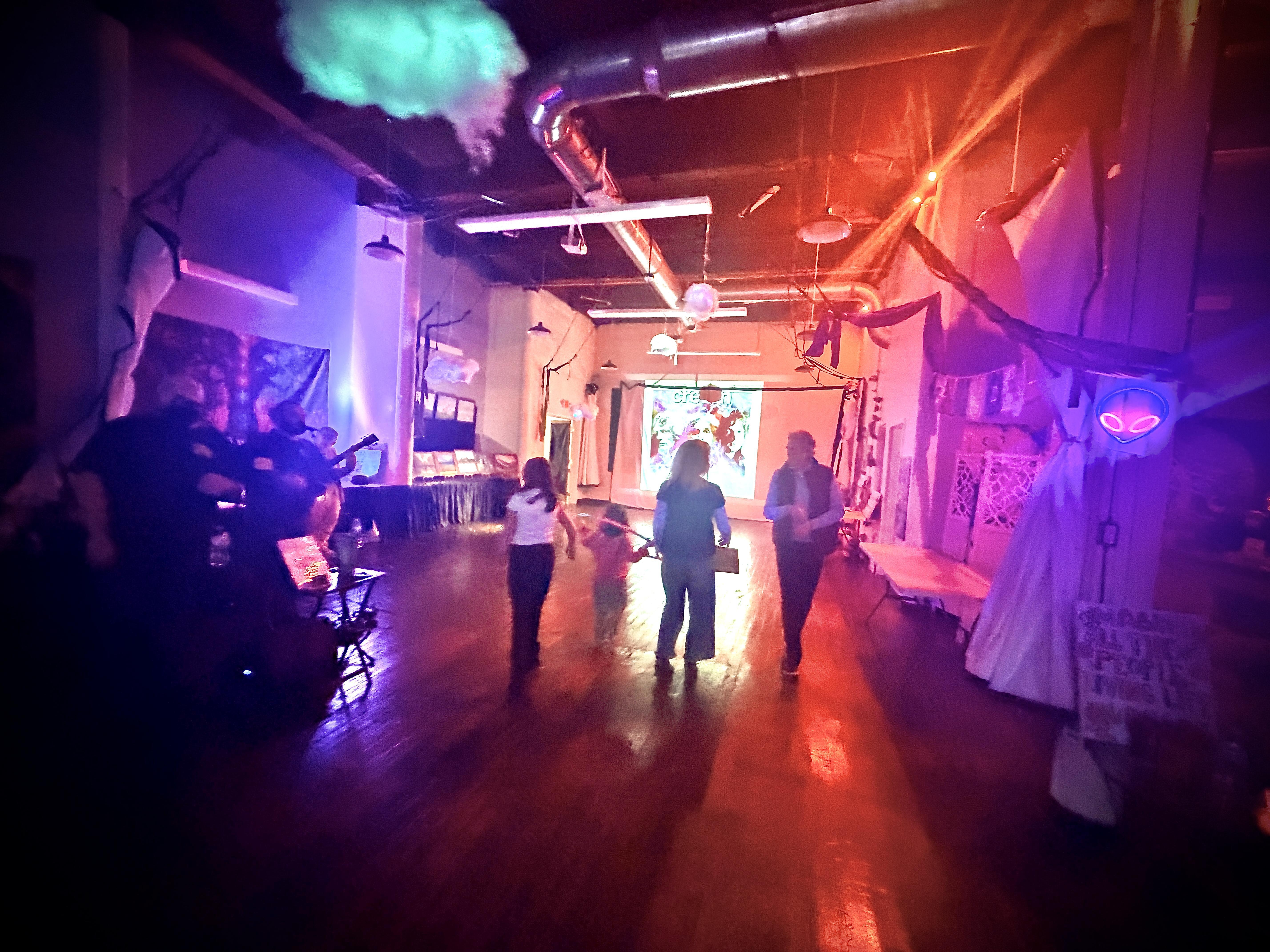 This Space is over 4500sq ft & can be utilized as a reception space, gathering for a shower, Luncheon or Dinner. It can also be used for a party with a dj or band and has lighting and immersive screens to create any environment you are imagining.