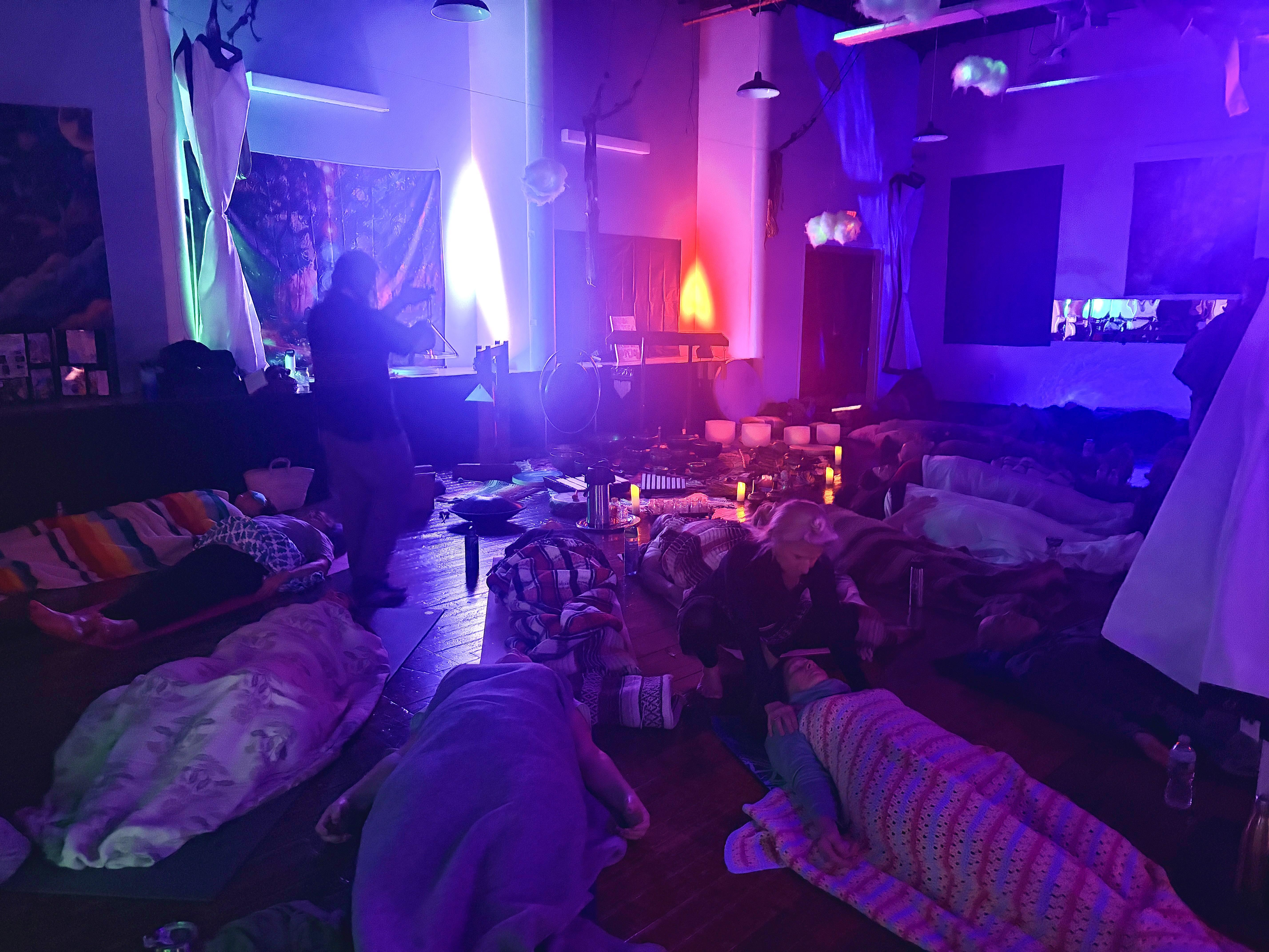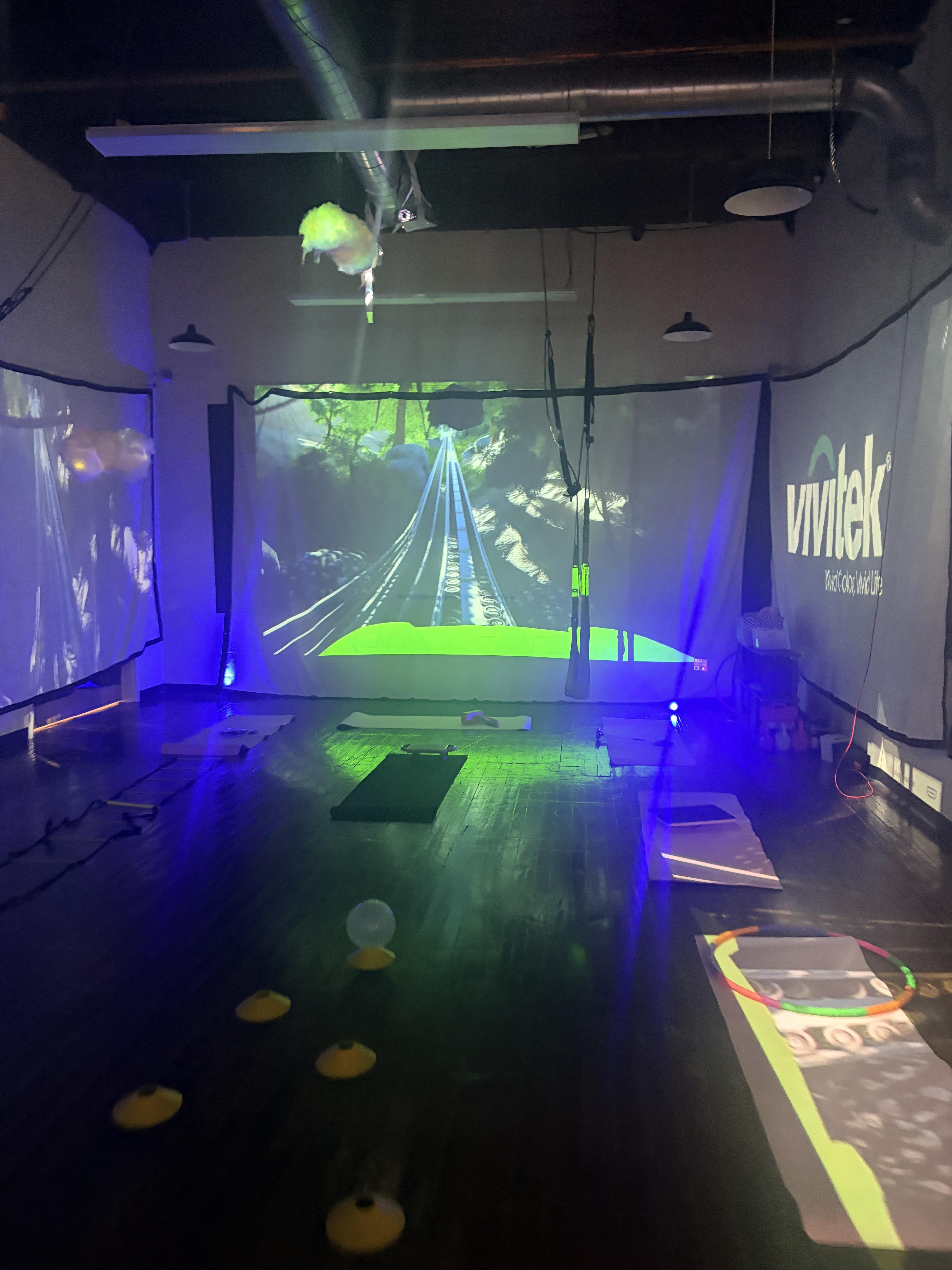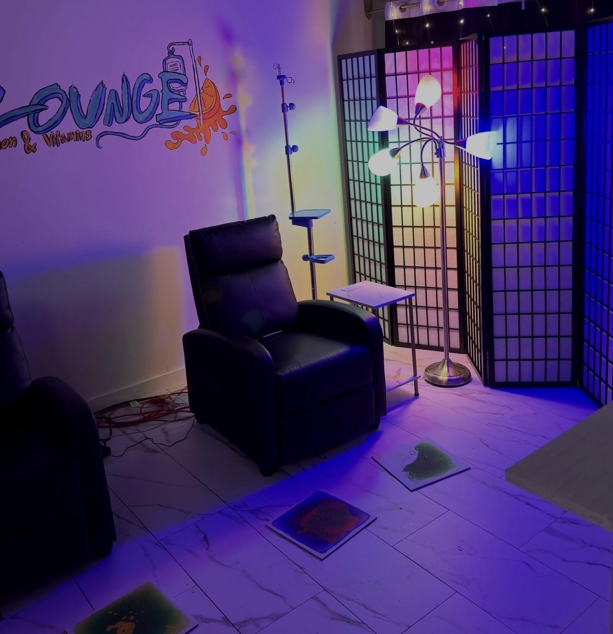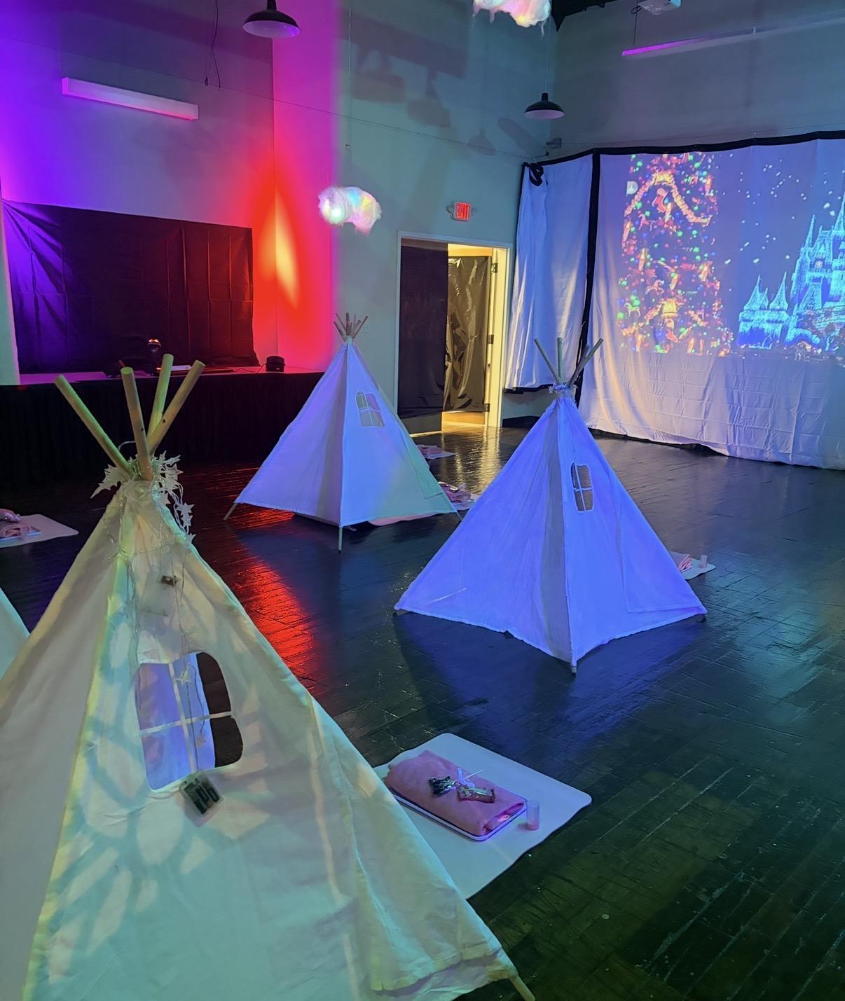 Lighting, immersive projection screens for atmospheric creations tables/chairs if needs for rental, champagne and wellness mocktails