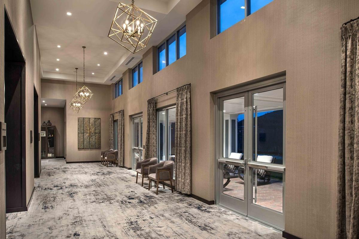 A beautiful prefunction space running along two sides of the Granite Mountain Ballroom and leading to the Covered Terrace.