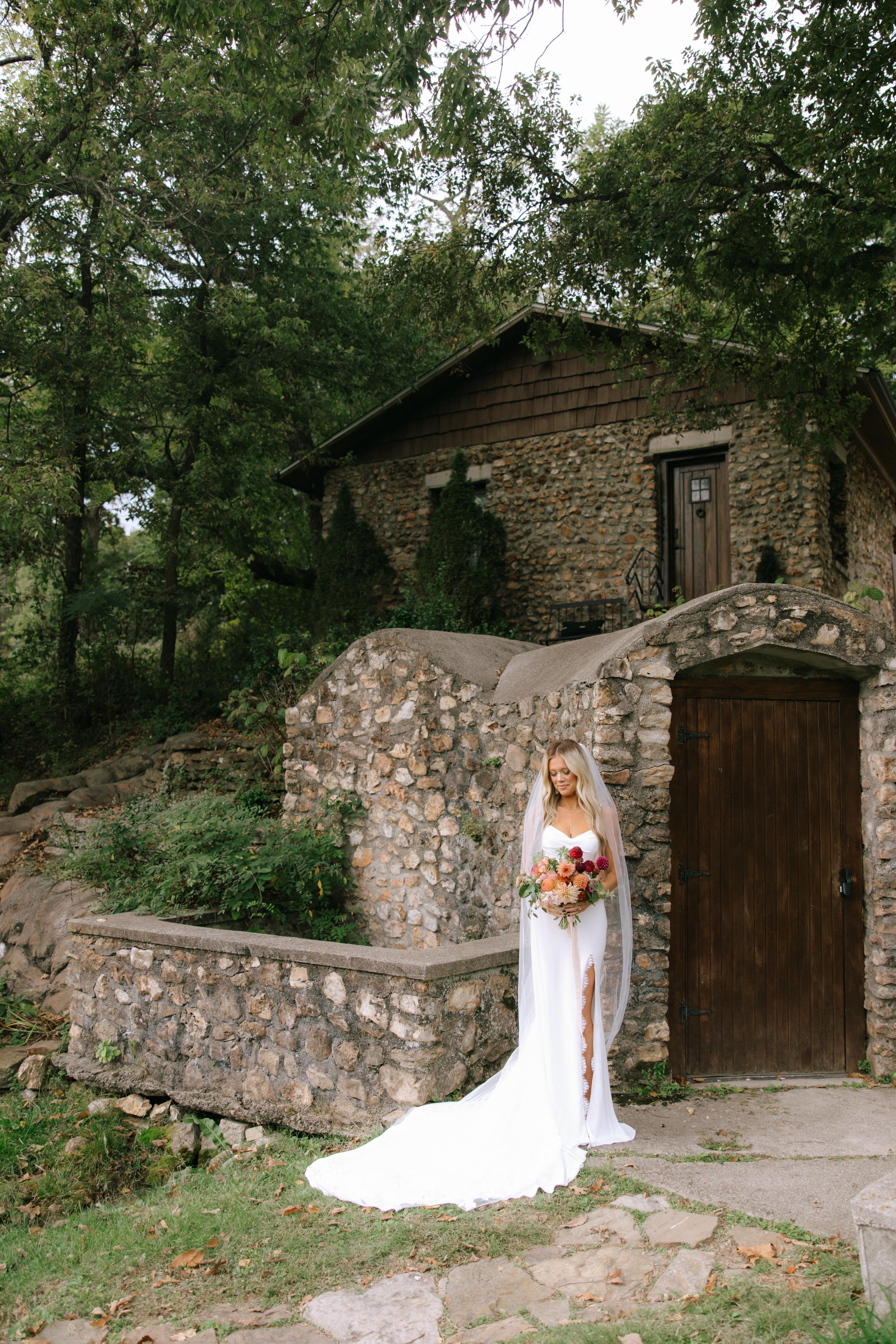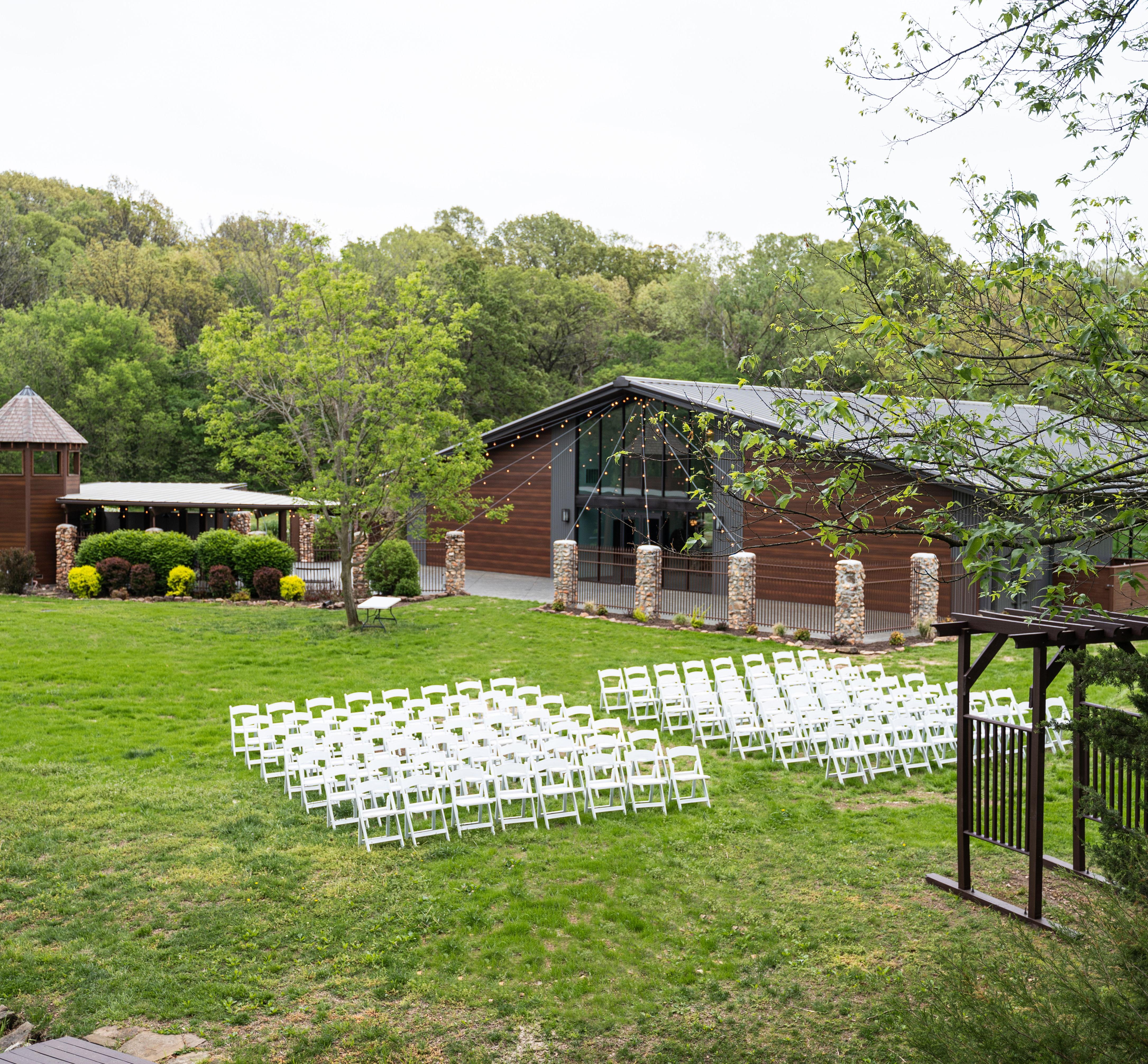 Greenwood Springs Event Center is an award winning wedding venue located just outside Joplin, Missouri. Our property blends timeless stone architecture with a modern glass greenhouse, creating a space where indoor comfort meets outdoor beauty. Couples can choose between a manicured outdoor ceremony lawn surrounded by mature trees or a fully climate controlled glass venue filled with natural light. The space comfortably hosts celebrations of up to 250 guests. The restored 100 year old Bridal Cottage offers a private place to get ready before walking across the bridge to the ceremony. Beneath it, the Groom’s Cave provides a relaxed space for the guys to spend the morning. Outdoor patio areas with fire pits and seating extend the celebration into the evening.