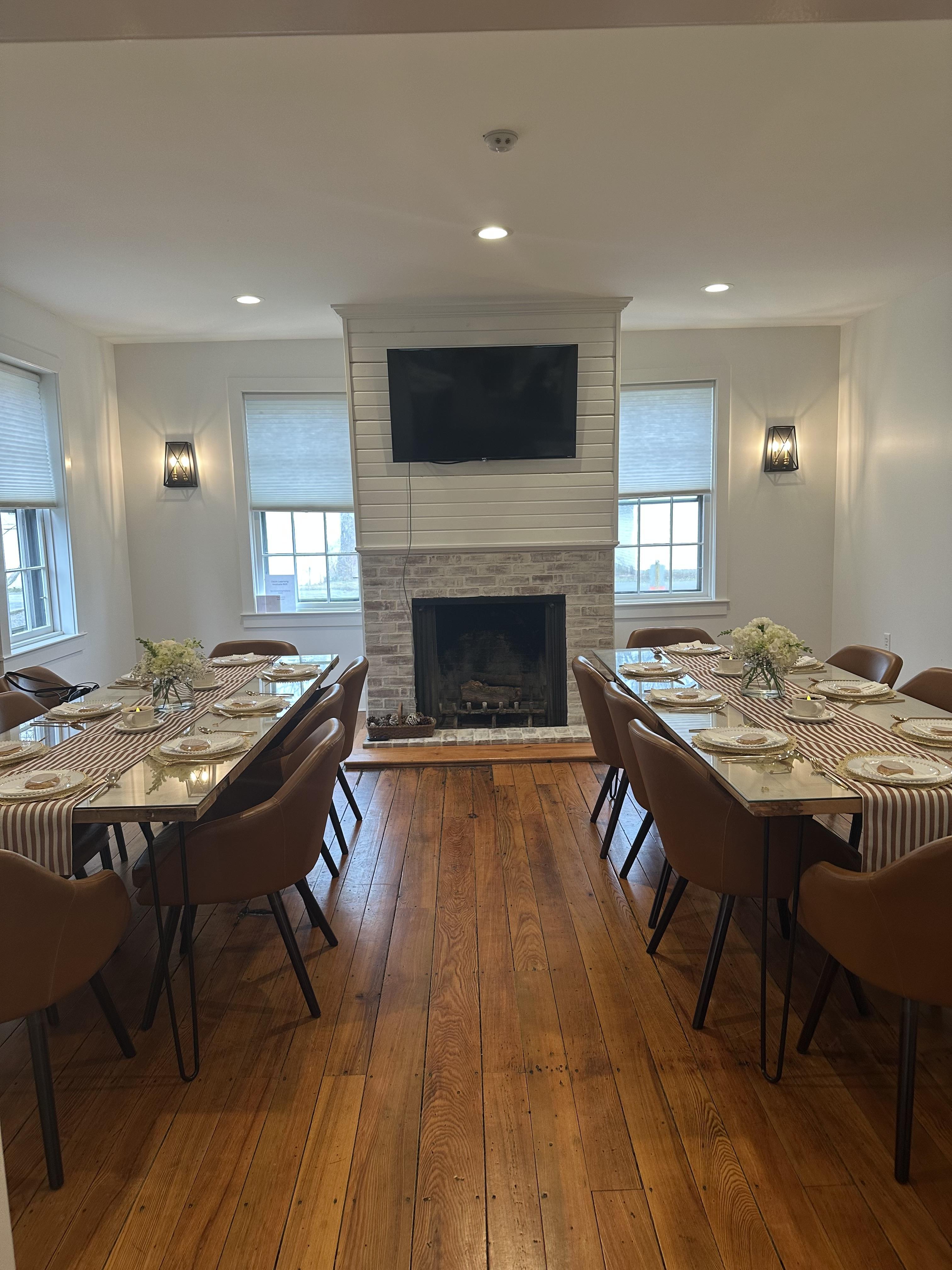 The Davis Learning Institute includes a small commercial kitchen, three handicap-accessible restrooms, and two large first-floor meeting spaces equipped with flat-screen TVs and Wi-Fi. Upstairs, two additional rooms provide flexible space for bridal suites, additional gathering space, or intimate parties.
