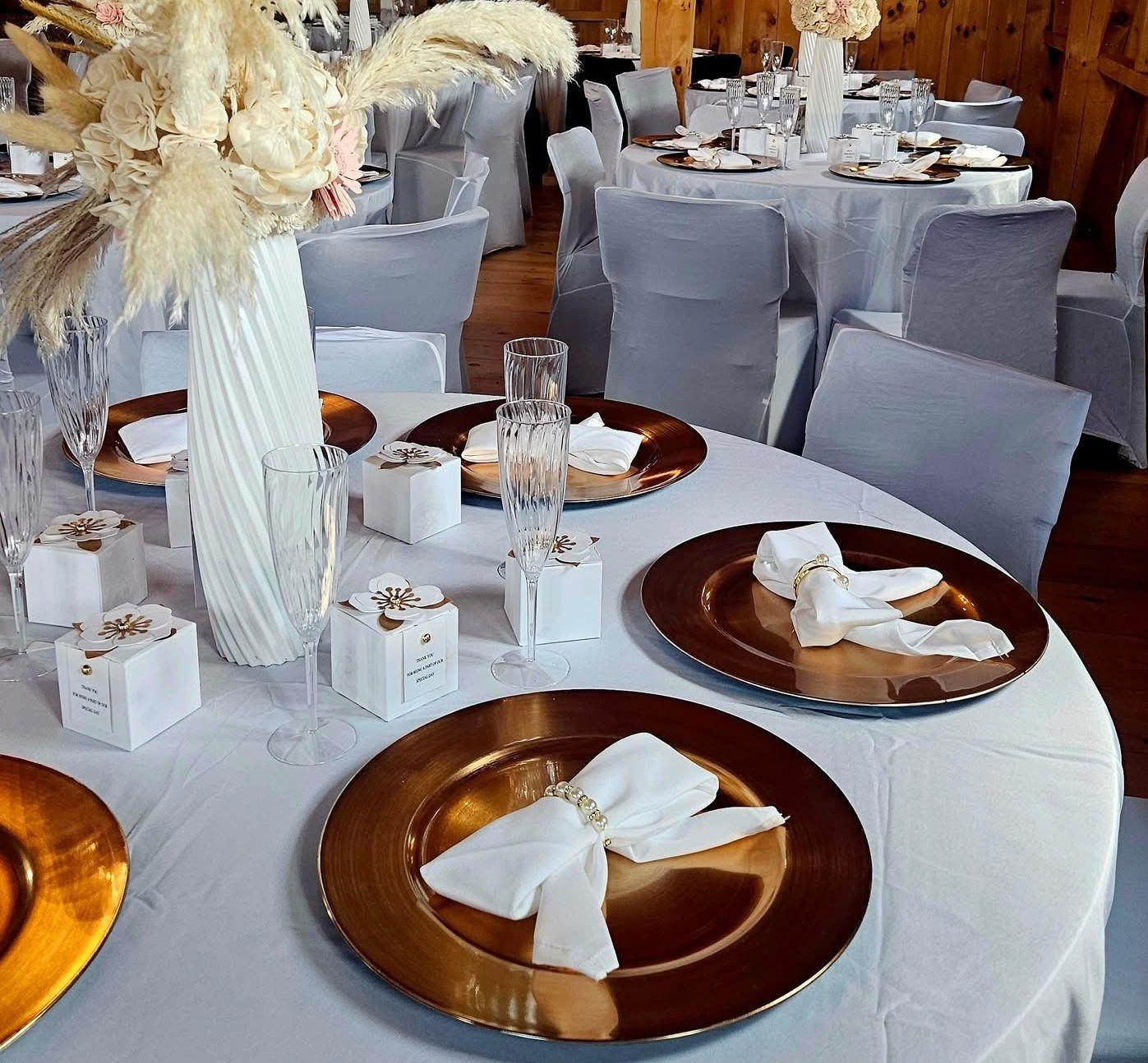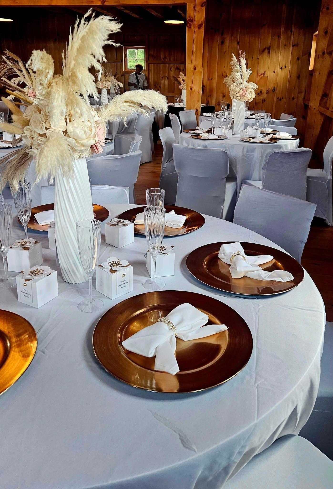 We have a gorgeous rustic indoor space that easily accommodates 100 people. We have two outdoor patios, one covered and one partially shaded with sails, overlooking the lush vineyard. We also provide all the tables and chairs.