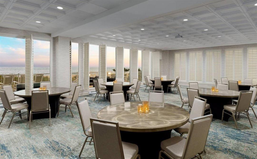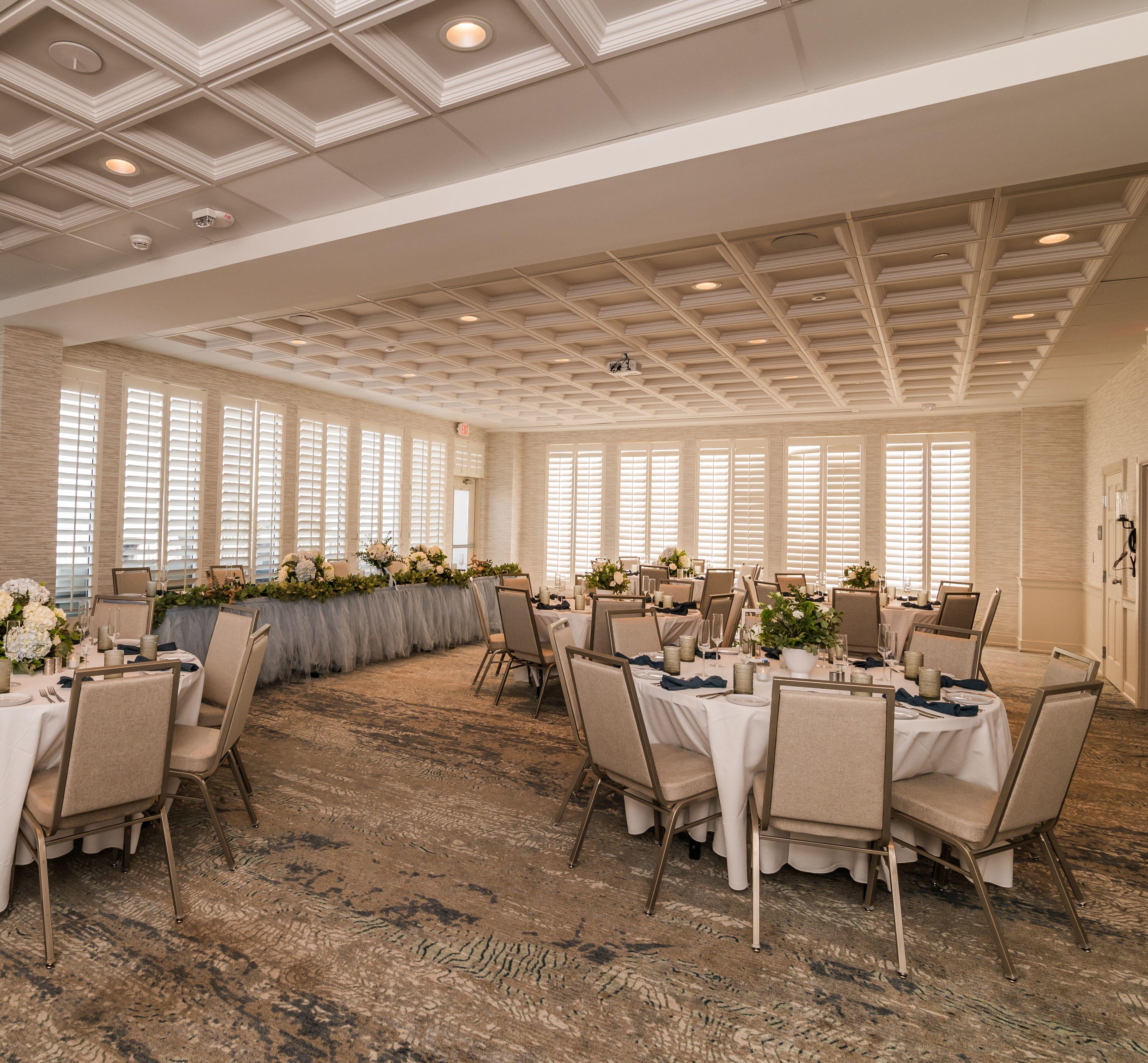 Our venue features two distinct, elegant event spaces perfectly suited for all your wedding-related gatherings, from rehearsal dinners to grand receptions. The Dunes Manor Ballroom offers a spacious, airy atmosphere that can be customized for any layout, allowing your grand vision to seamlessly come to life for dinner and dancing. Adjacent pre-function areas provide an excellent location for cocktail hours and guest arrivals, while offering beautiful coastal views. For more intimate affairs, the Zippy Lewis Room provides a refined setting for bridal showers, welcome parties, farewell brunches, or smaller ceremonies. Both rooms are designed with versatile arrangements in mind, ensuring a comfortable flow for guests to celebrate your momentous occasion right on the scenic Ocean City coastline.
