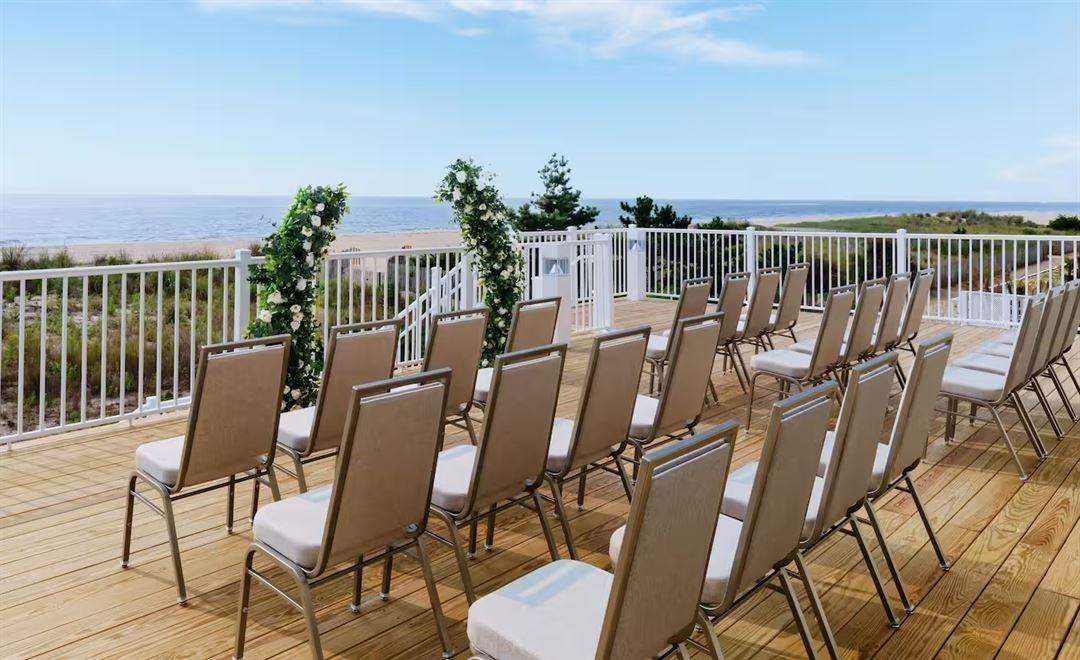 Exchange vows with the Atlantic Ocean as your stunning backdrop at the Hilton Garden Inn Ocean City Oceanfront. This venue offers the perfect blend of coastal beauty and modern convenience for your ceremony, reception, or all your pre- and post-wedding celebrations. Enjoy the fresh sea breeze and mesmerizing ocean views from your private balcony in every guest room, ensuring a luxurious stay for your entire party. With versatile oceanfront event spaces, customizable catering by Solstice Bar & Grill, and a prime location steps from the iconic Boardwalk, we simplify your destination wedding planning. It's the ideal setting for browsing couples looking for an accessible, high-quality beach experience in Maryland.