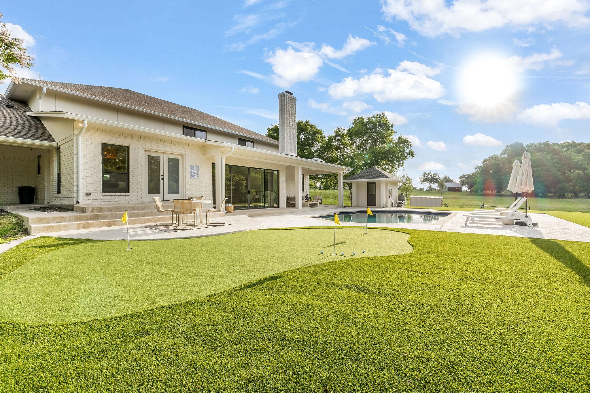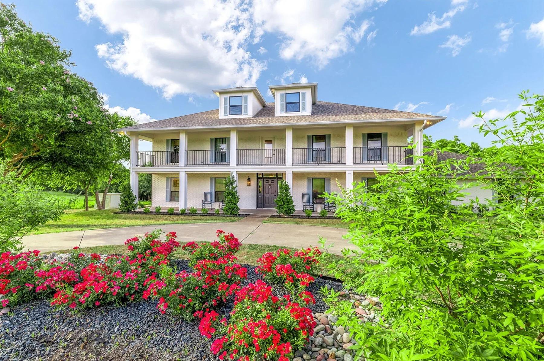 Tucked between a native pecan orchard, Honeysuckle Manor is a luxury event venue located on a peaceful 7-acre estate in Midlothian, Texas—just 25 minutes from both Downtown Dallas and Arlington. This two story modern colonial style home features a wraparound porch, elegant interiors, a pool, putting green, and stunning views that set the tone for unforgettable gatherings. Whether you’re planning an intimate wedding, a weekend reunion, or a corporate retreat, Honeysuckle Manor offers the charm of a countryside escape with the convenience of a city commute. Ideal for events up to 75 people. Can sleep up to 16 comfortably (not including the couches). Honeysuckle Manor offers a private pool, fully equipped kitchen, spacious living areas, outdoor entertaining spaces, putting green, game room, high-speed WiFi, bridal suites, and plenty of parking for guests.