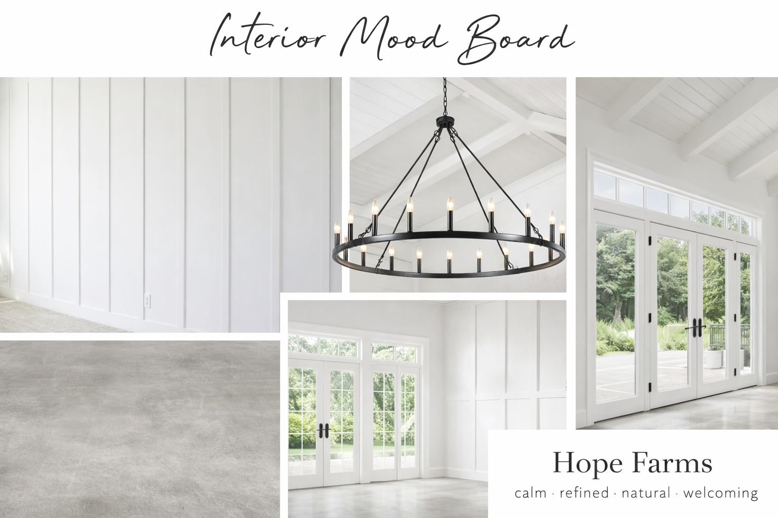 Hope Farms provides a serene setting that feels like home—while still offering modern comforts and thoughtful touches. Our venue features a beautiful white barn that combines simple charm and open space, creating the perfect blank canvas for your one-of-a-kind celebration. There are multiple outdoor ceremony areas, and flexible spaces perfect for receptions, rehearsal dinners, and more. Note: Barn image shown is an AI rendering of our vision for the barn after renovations are complete.