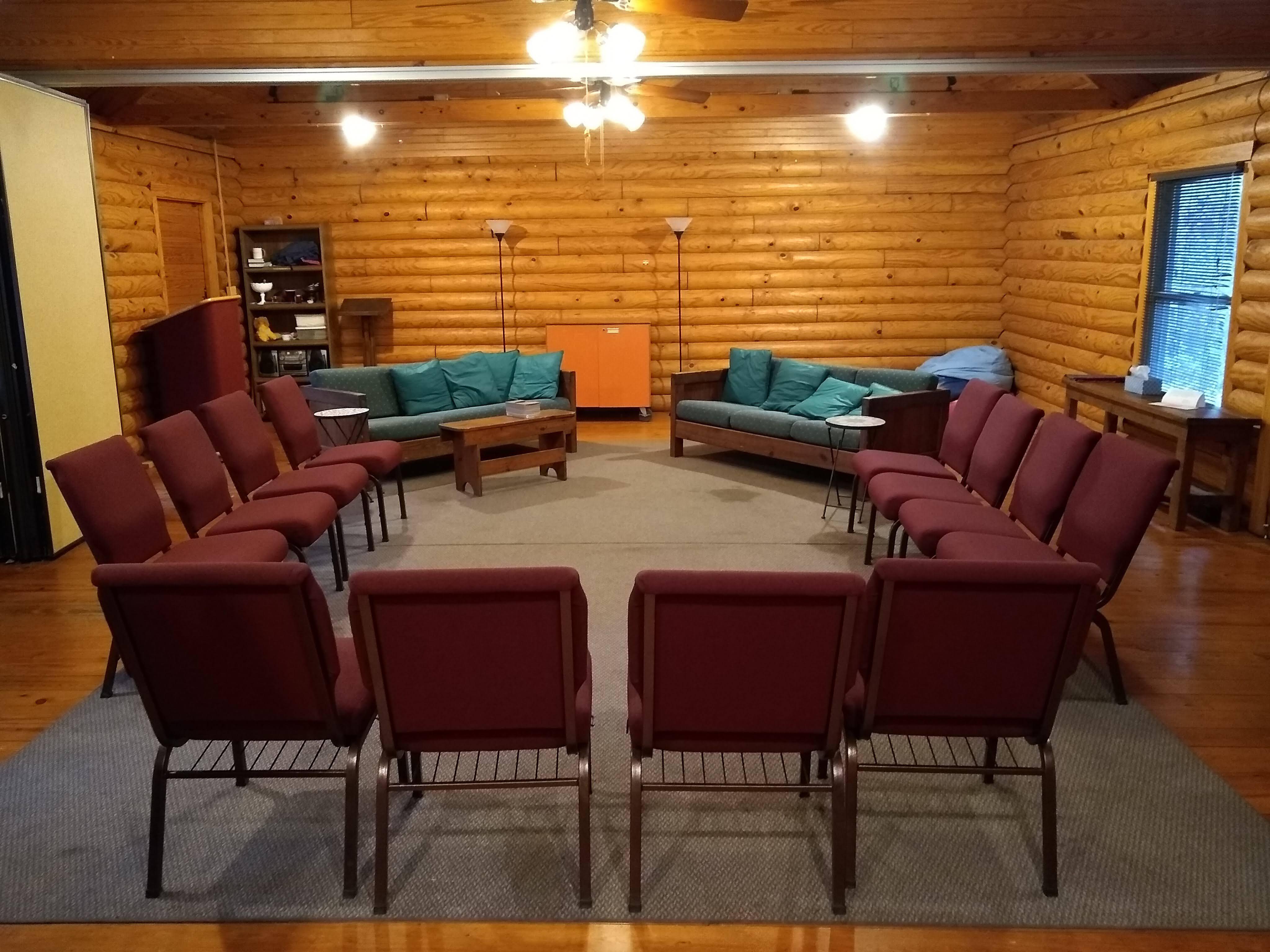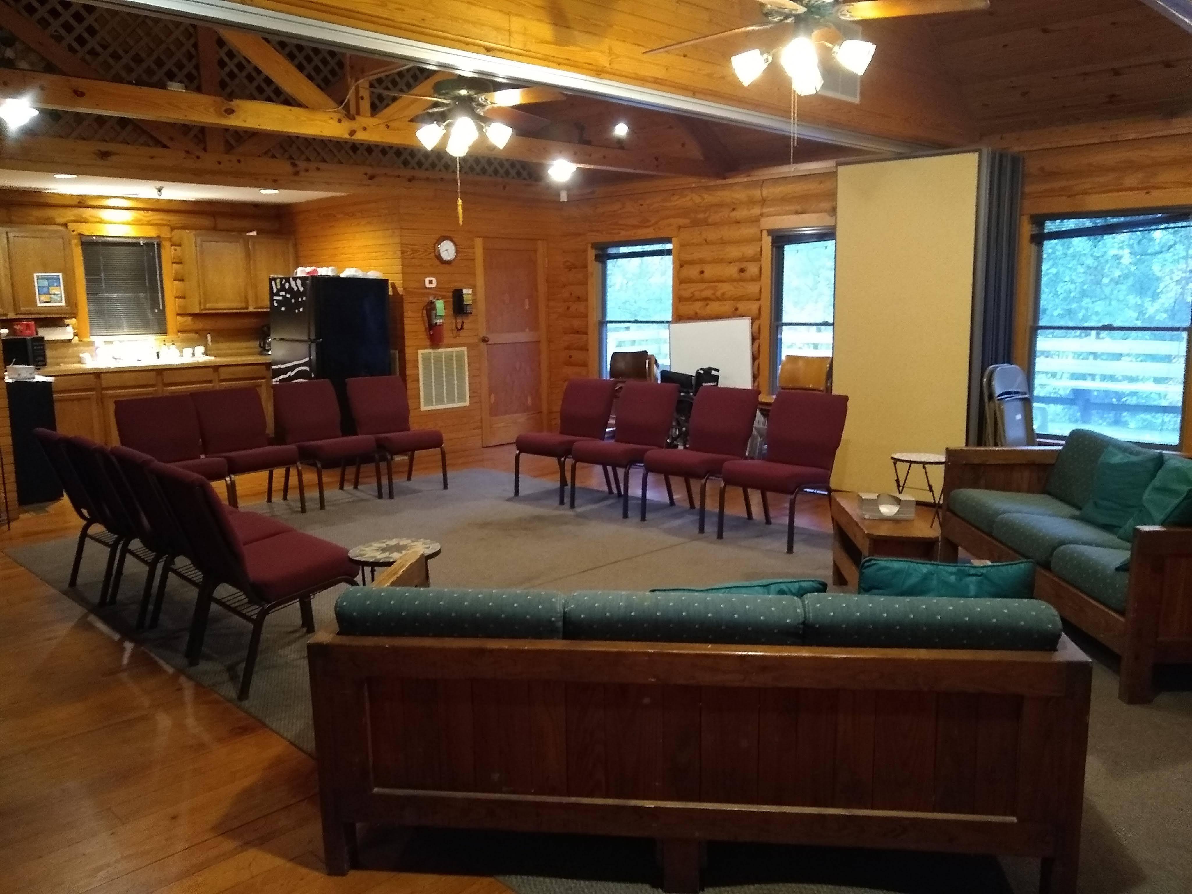 -basic sound system (livestreaming and professional services, additional charge) -tables -chairs -arch -getting ready rooms -access to all other facilities (outdoor, cabin, fellowship hall) -dinnerware (cups, plates, silverware) -tablecloths (white)