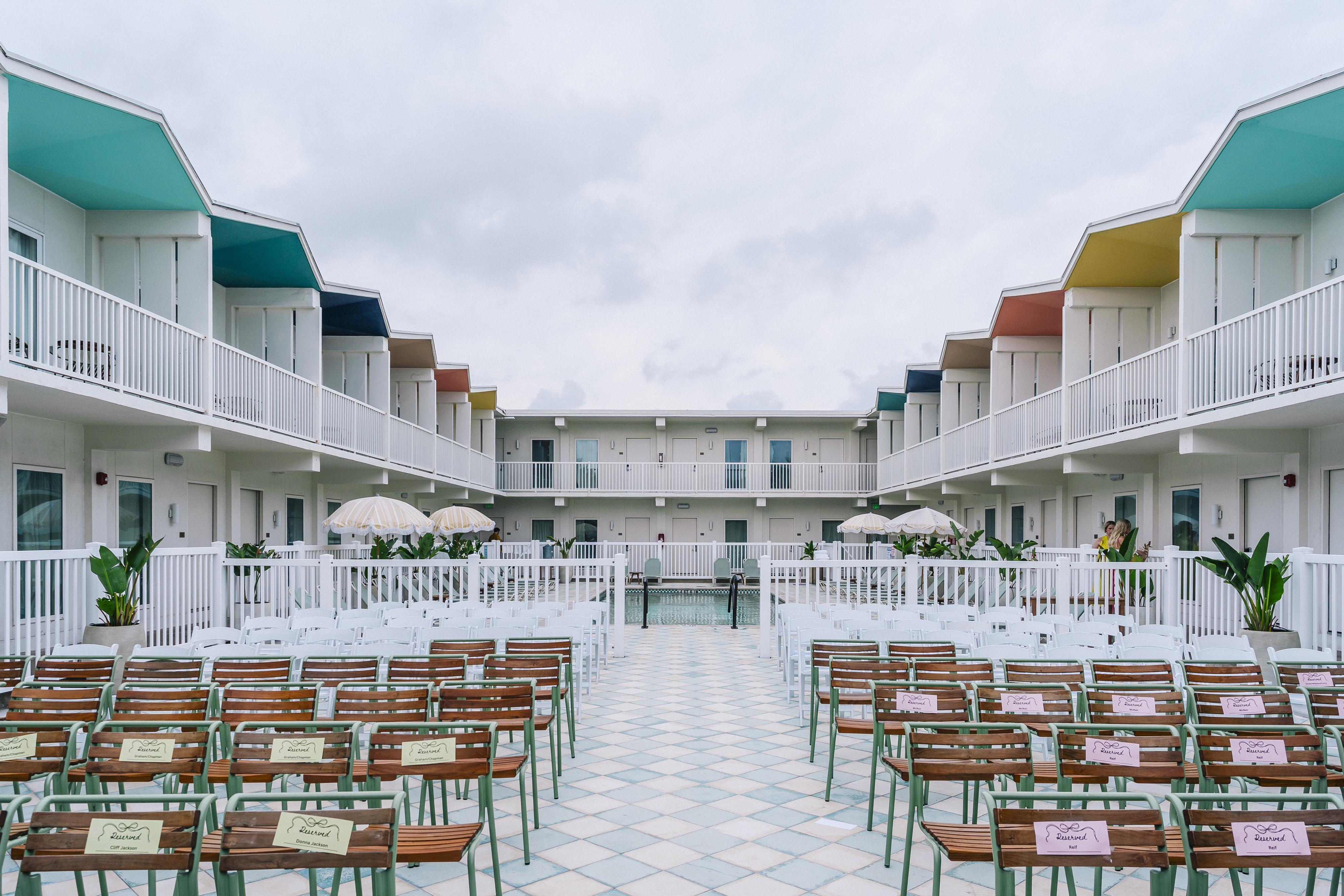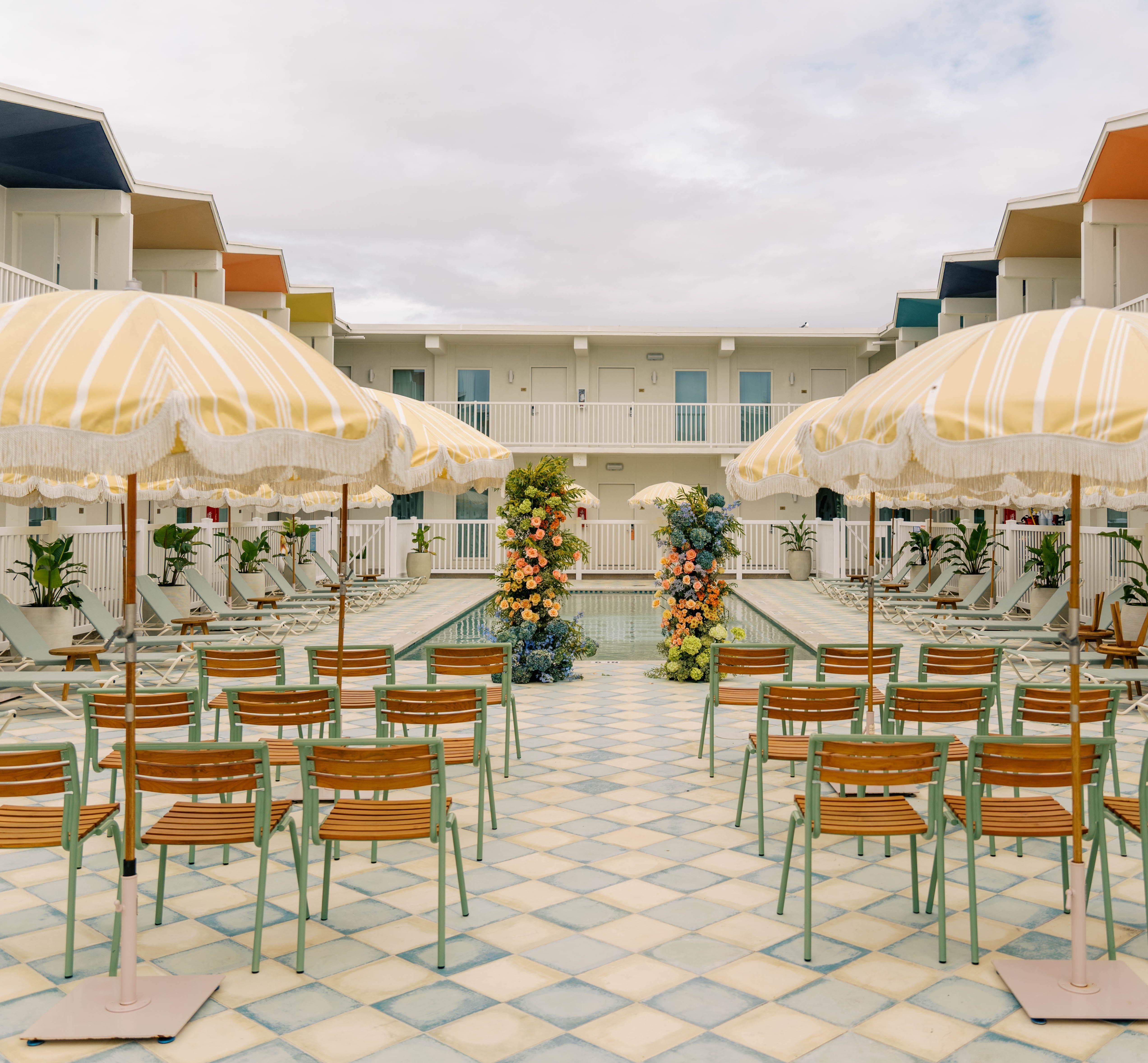 A Revitalized 1960s Oasis on the Seawall Hotel Lucine is a soulful, revitalized 1960s motor court transformed into a refined boutique hotel and premier event venue in Galveston, Texas. Located directly on the Seawall with breathtaking 180-degree ocean views, our property offers a cozy oasis and a lively, people-centric atmosphere. We specialize in weddings that move effortlessly from welcome party to ceremony to reception, blending classic mid-century charm with modern elegance for a unique "house party" vibe. Say "I do" on the coast with venues that move effortlessly from welcome party to ceremony to reception. Menus are crafted by our culinary team, room blocks keep your favorite people steps away, and the Lanai offers a spacious place to get ready for the day.