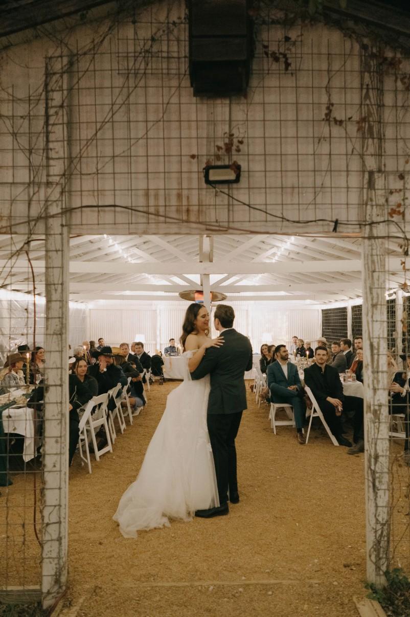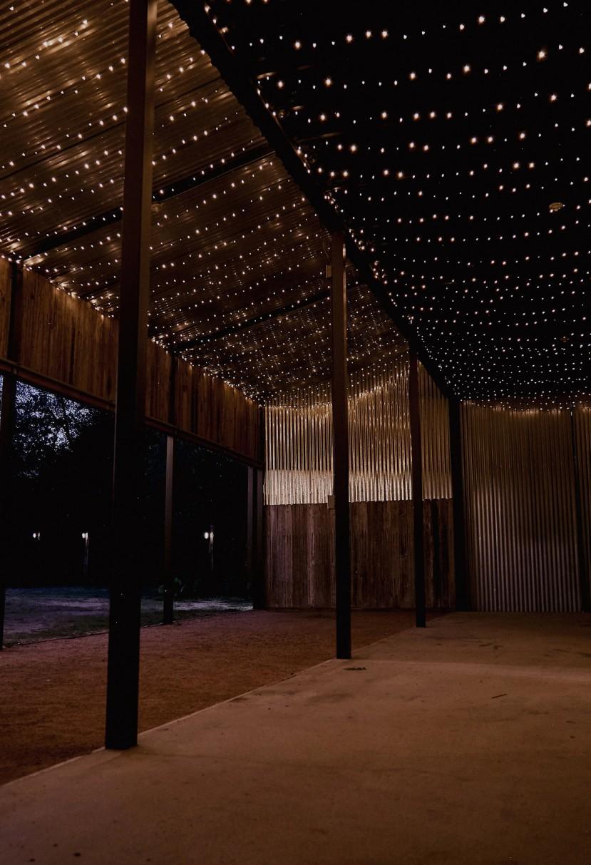 - Covered barn space for catering - DJ/band and a lounge - Saloon space for a bar - String lights- Restrooms - Vendor room