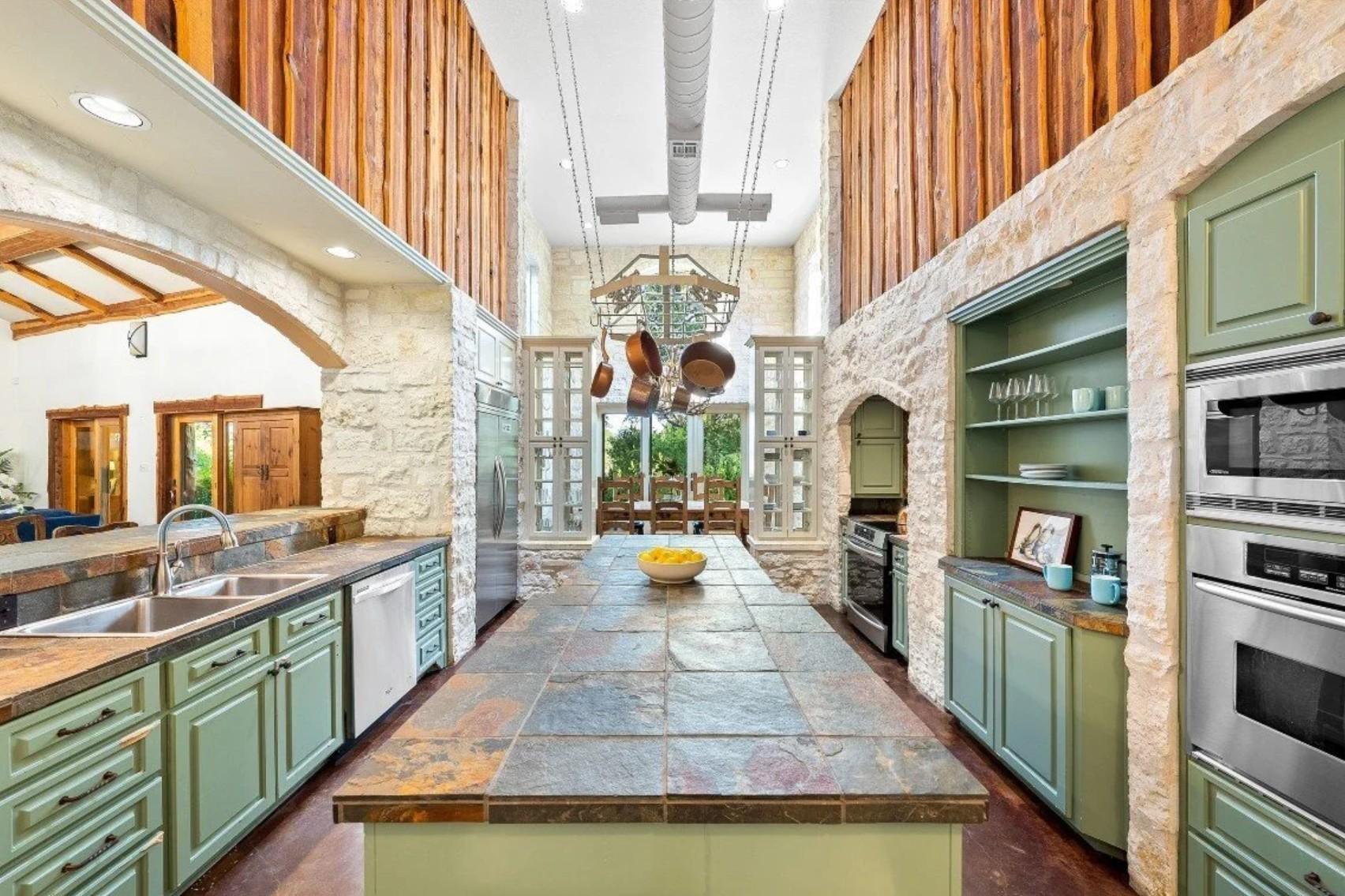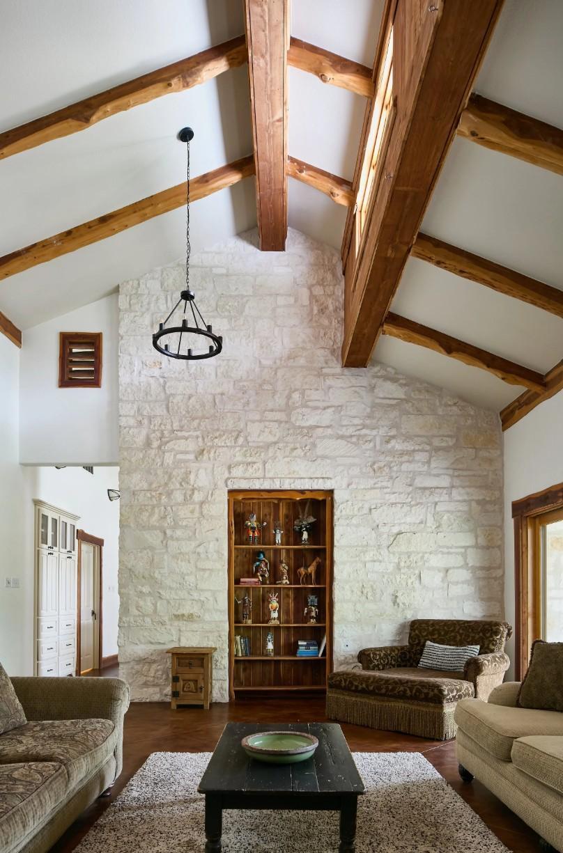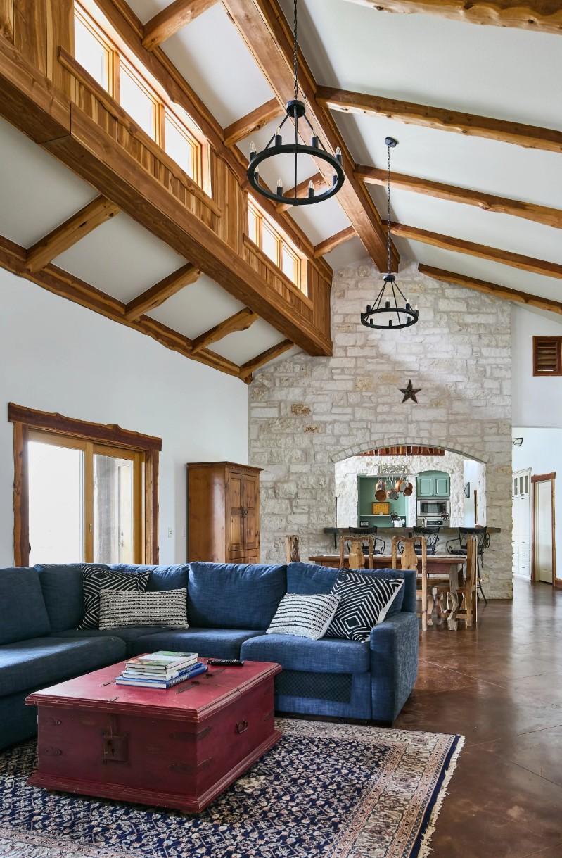 Casadecas is a stunning single-story ranch house with soaring ceilings, red cedar and limestone details, and a warm mountain-lodge feel with an authentic Austin vibe. Sleeping up to sixteen guests, it features a welcoming kitchen and two large entertainment rooms, ideal for gathering all weekend. The primary suite doubles as a gender-neutral wedding suite.