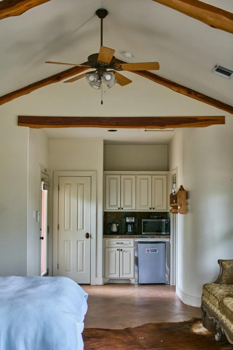 Sunrise Casita is a private studio guest house with two queen beds and a full bath, located near Casadecas and the Promenade with direct access to the Pergola and Big Tree. It’s often used as a second wedding suite for bride or groom, or a cozy honeymoon stay.