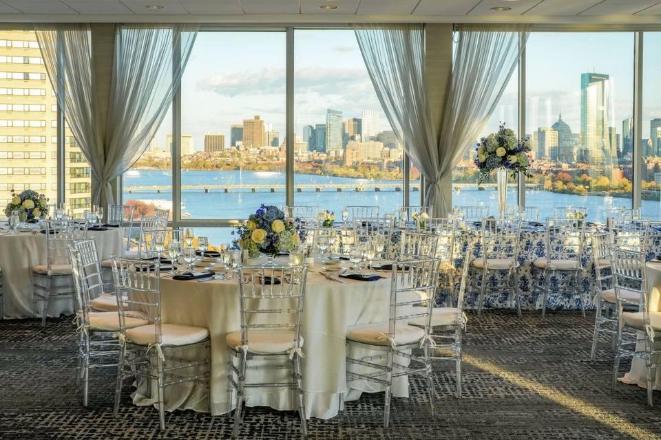 Hyatt Regency Boston / Cambridge is an elegant wedding destination located at 575 Memorial Drive in Cambridge, Massachusetts, overlooking the scenic Charles River with breathtaking views of the Boston skyline. With a mix of sophisticated indoor ballrooms, picturesque outdoor spaces, and dedicated wedding planning support, Hyatt Regency offers unforgettable celebrations for couples of all styles.