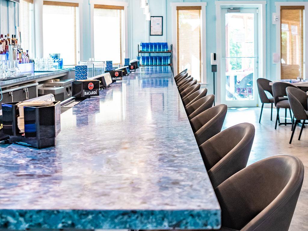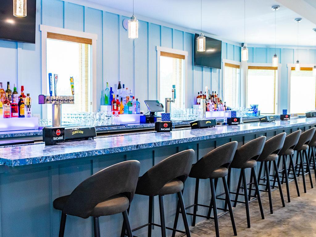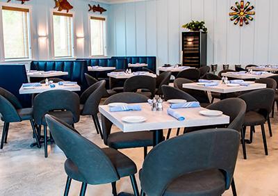 For smaller, more intimate occasions, the Dining Room accommodates up to 60 guests. Bright and nautical in design, it creates a cozy yet elegant atmosphere perfect for rehearsal dinners, showers, or close‑knit receptions. Its coastal charm adds warmth to every celebration, making it a welcoming space for family and friends.