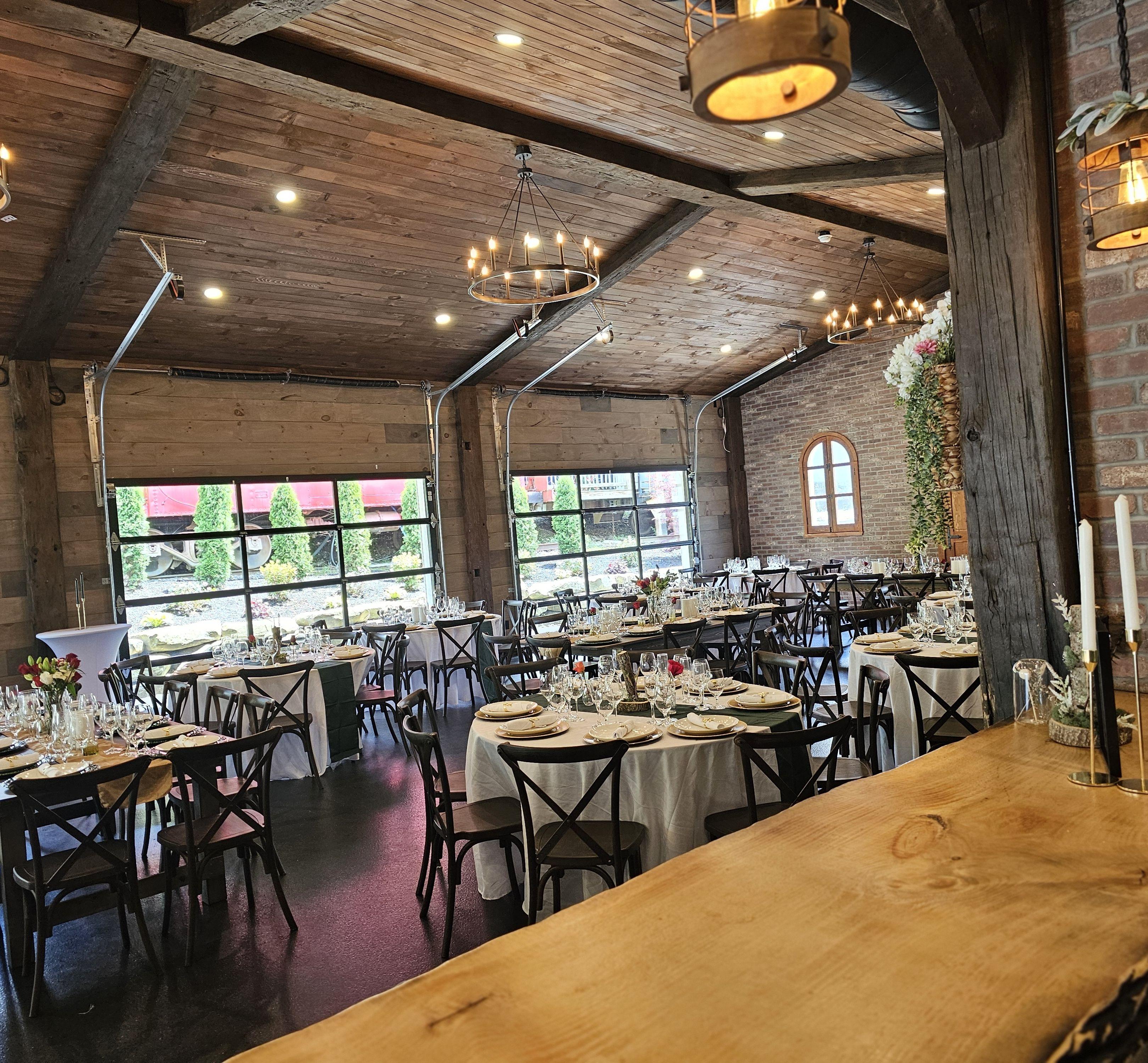 La Gare is a one of a kind venue that blends timeless elegance with rustic charm. Begin your special day with your mother and bridesmaids in a modernized yet nostalgic 100+ year old Pullman Palace train car for Primping. Sip on morning mimosas and enjoy our delicious food while dreaming of what's to come. As you walk down the aisle to deliver your Vows, your guests will be sitting in beautiful ceremony chairs looking up at you on the elevated rock wall. Cocktail hour can either be in a quaint courtyard or in a spacious Gastropub. The Reception is a modern rustic barn that seats about 150 with the garage doors down, but can easily accommodate over 200 guests with use of the adjoining outdoor space. Finally, spend your special night at one of our unique AirBNBs, one of which former President Teddy Roosevelt himself stayed in! If unforgettable is what you want, no venue can deliver quite like La Gare can. Congratulations!!!