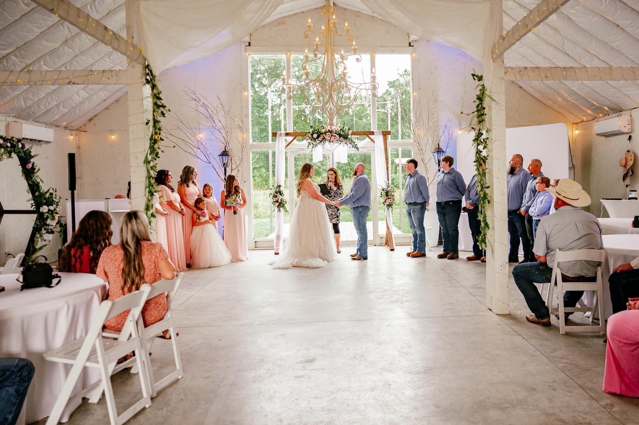- All of our Chandeliers are dimmable - Comes with Uplighting and Dance Lighting - 3 Bathrooms are available in the Venue - Side room comes with a Rustic Bar, Refrigerator and Buffet Table