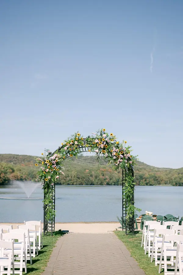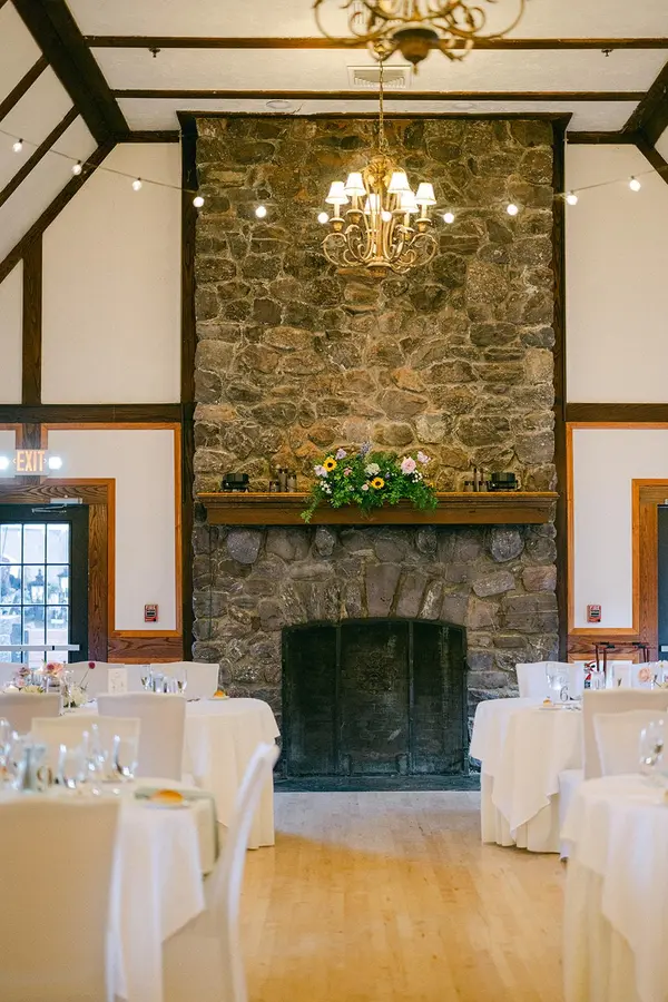 Embedded between tranquil mountains is the Lake Valhalla Club wedding venue located in the Montville, New Jersey. The Tudor-style club specializes in hosting rustic yet elegant celebrations with picturesque views. The private property is great for couples searching for a location rich in history with enchanting landscapes as far as the eye can see. Lake Valhalla Club offers both indoor and outdoor event space for wedding celebrations. During the warm months, ceremonies and cocktail hours can be held outside. Couples can choose from a variety of outdoor locations found across the grounds, including areas with waterfront views. The outdoor spaces also feature sandy beaches, canopy tree lines, and shimmering fountains. Inside the clubhouse, a ballroom boasting vaulted wood ceilings and two stone fireplaces can be found. The opulent room can host up to 200 guests for grand wedding celebrations. The upper area reveals fantastic views of the 90-acre lake and majestic mountains.