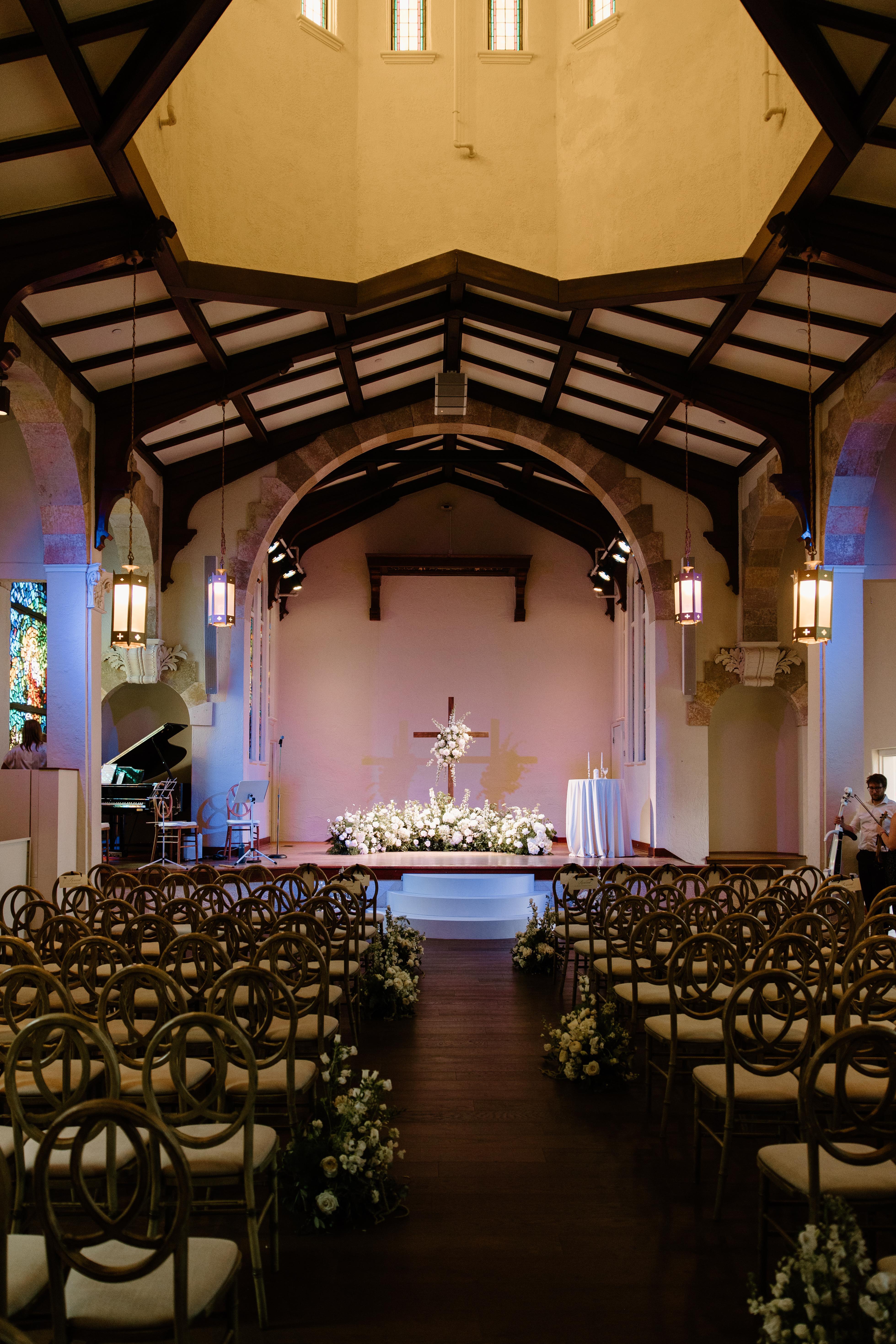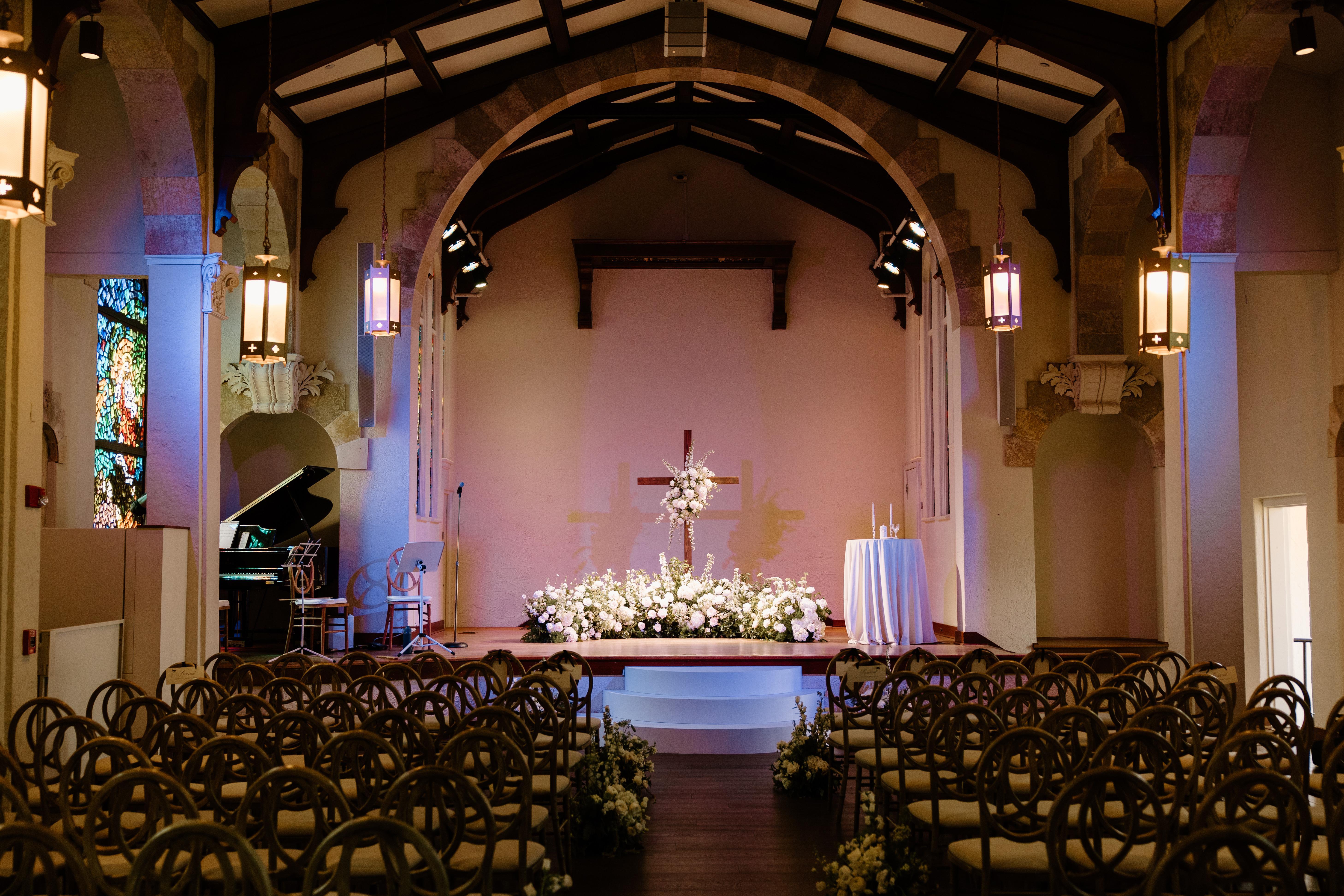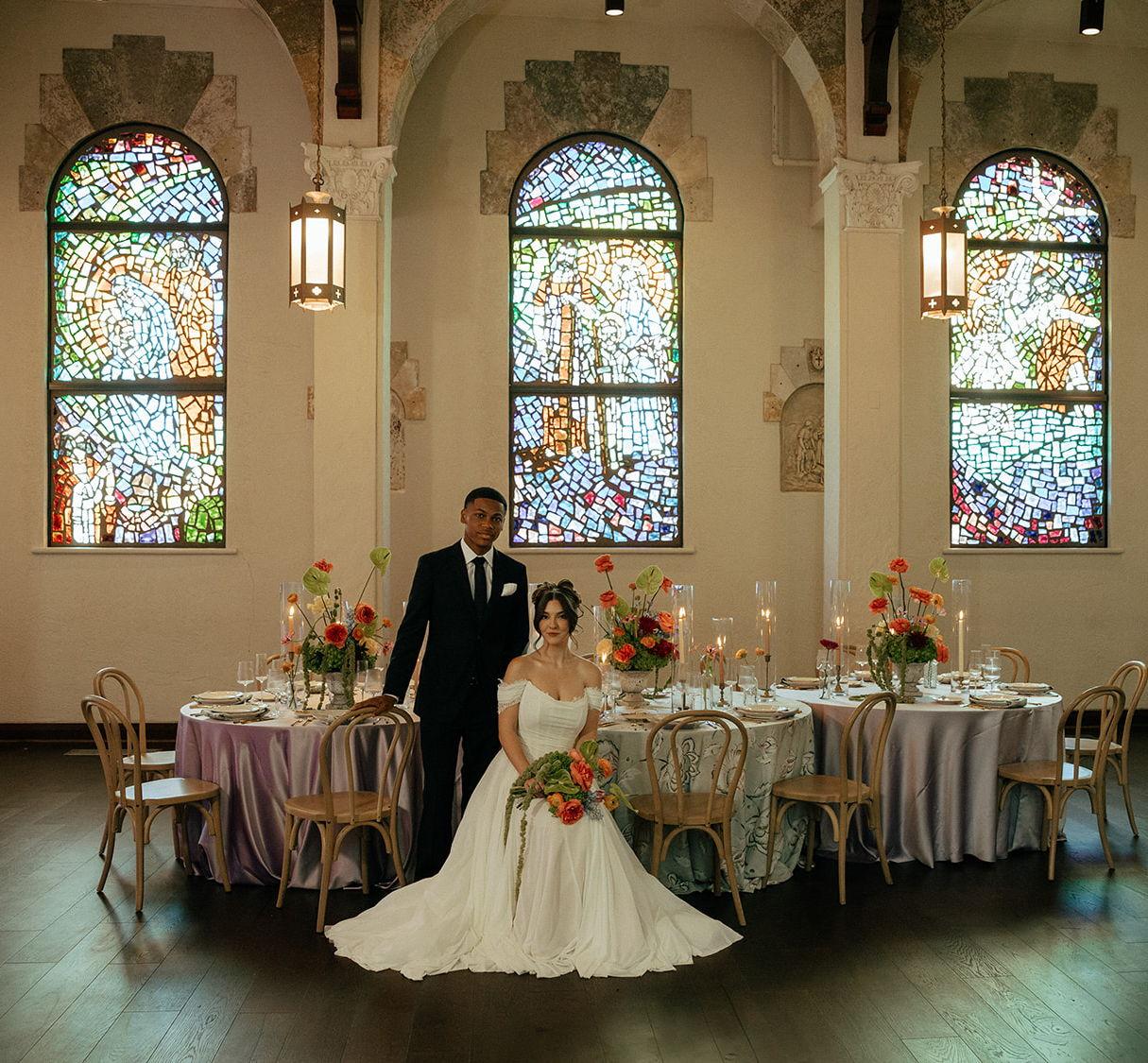 Exchange vows amidst the elegance of stained glass and historic grandeur at Updike Hall.