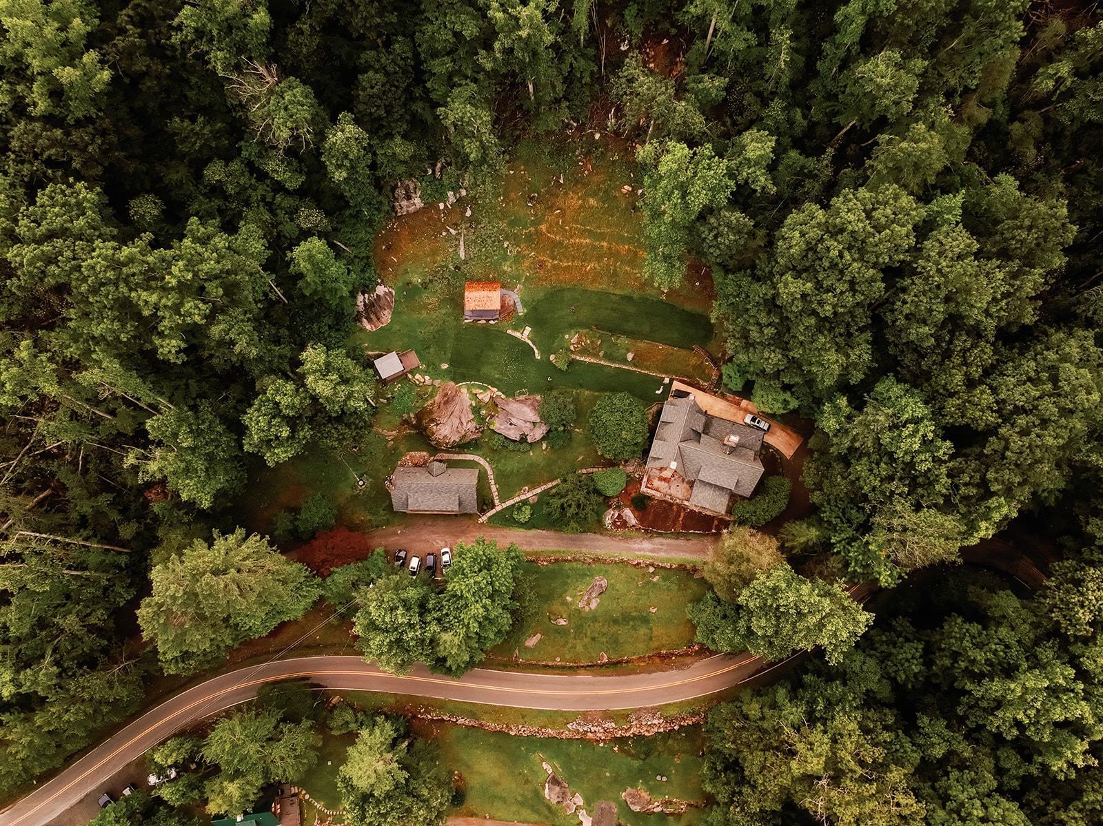 Laurel Falls is a historic wedding venue in Asheville, NC, set in a lush, forested background. This location offers some of North Carolina's most picturesque scenes, from private waterfalls to soaring mountain views. This 18-acre oasis is plentiful with trees, hiking trails, and breathtaking vistas of the Blue Ridge Mountains. The Lodge was once a 1920s private estate renovated to provide luxurious accommodations for couples and their loved ones to reside in the tranquil woodlands. Perfect for couples looking for a nature forward wedding venue that want to settle in and spend quality time with their loved ones who traveled from near and far to celebrate. With exclusive access to our four homes with room for up to 20 total, event spaces and inventory from Thursday - Sunday, your weekend wedding experience becomes a core memory for everyone! Our couples often reflect on their time here and describe it as "magical". Are you a Laurel Falls couple?! Inquire via our website to find out!