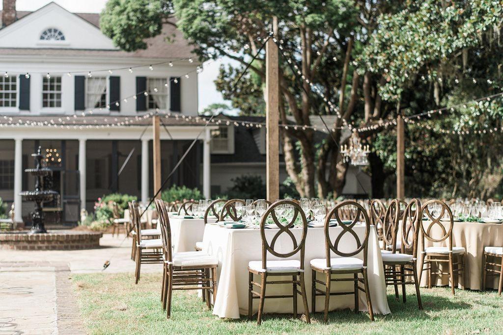 At the front of the home is the Fountain Patio , where guests can enjoy Lowcountry views during the reception. 150 guests can sit comfortably on the paved patio and additional tables and chairs can be added to the surrounding grass areas to sit up to 200 guests total.