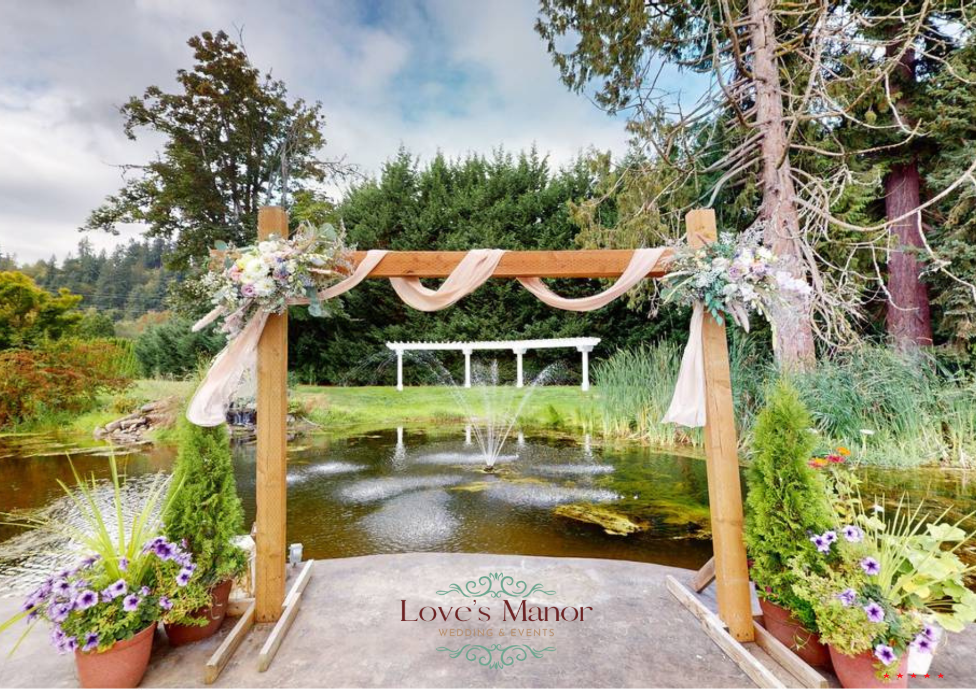 Love’s Manor | Outdoor & All-Season Wedding Venue in Washington Stunning water features, and sweeping views of the Northwest!