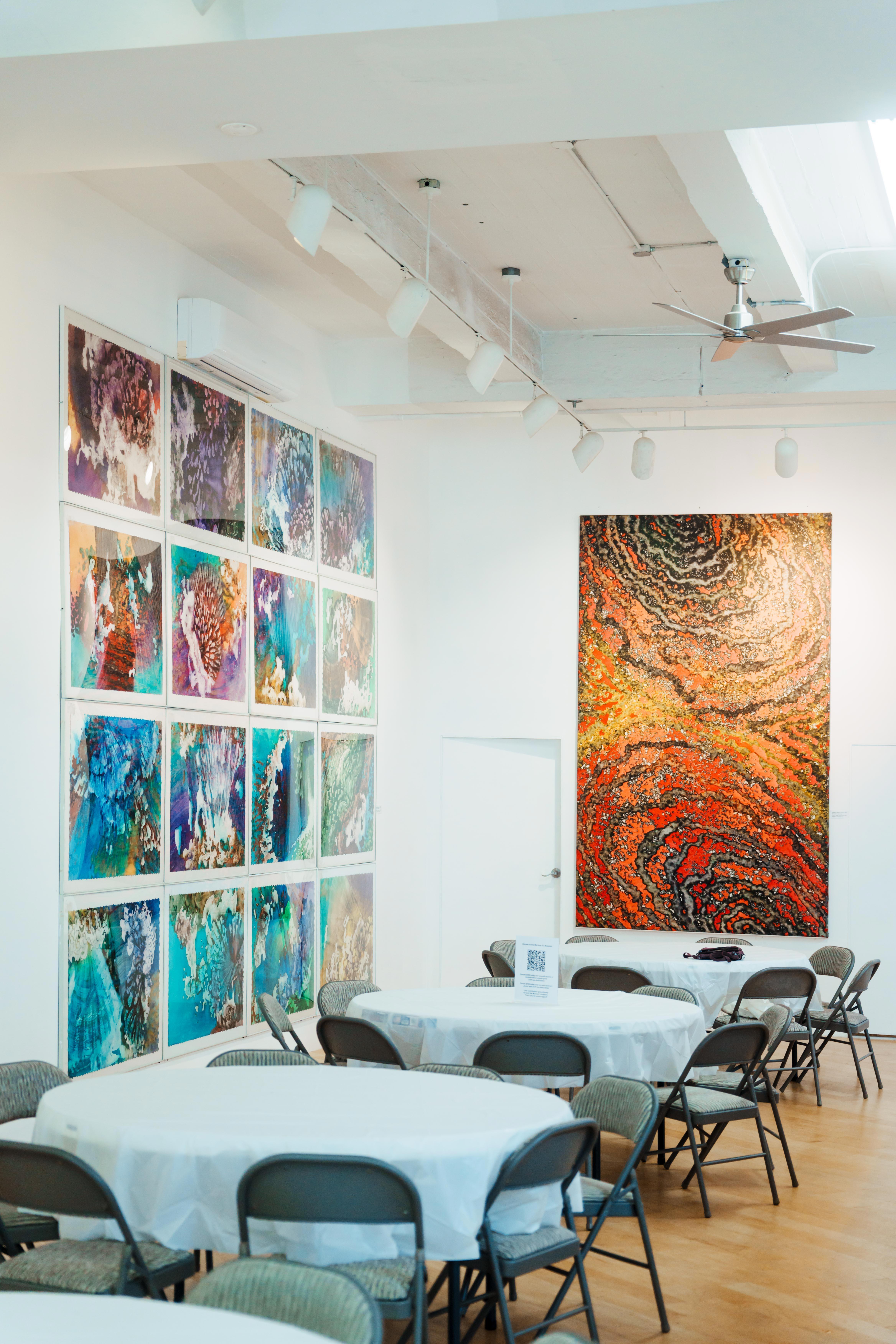 This space features 16' ceilings, 4,000 square feet, and the large-scale paintings of Marlene Yu. The Main Exhibition Hall is an unforgettable backdrop for a wedding ceremony or reception.