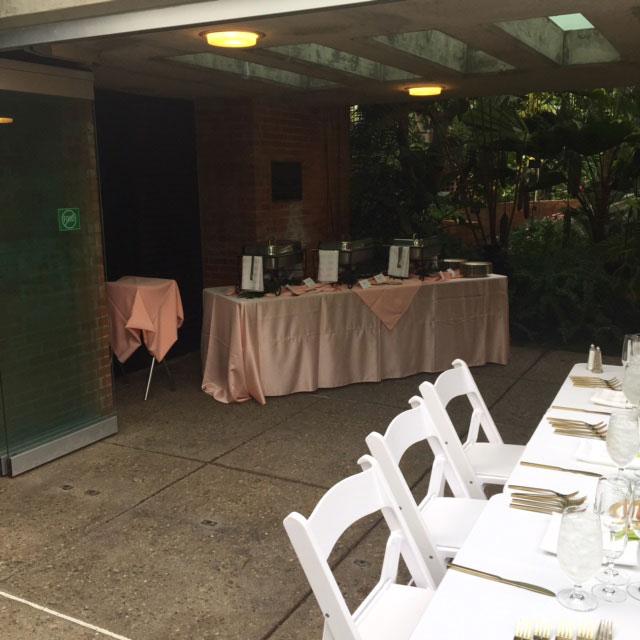 The venue will provide just the space. You’ll bring in your own caterer and vendors.