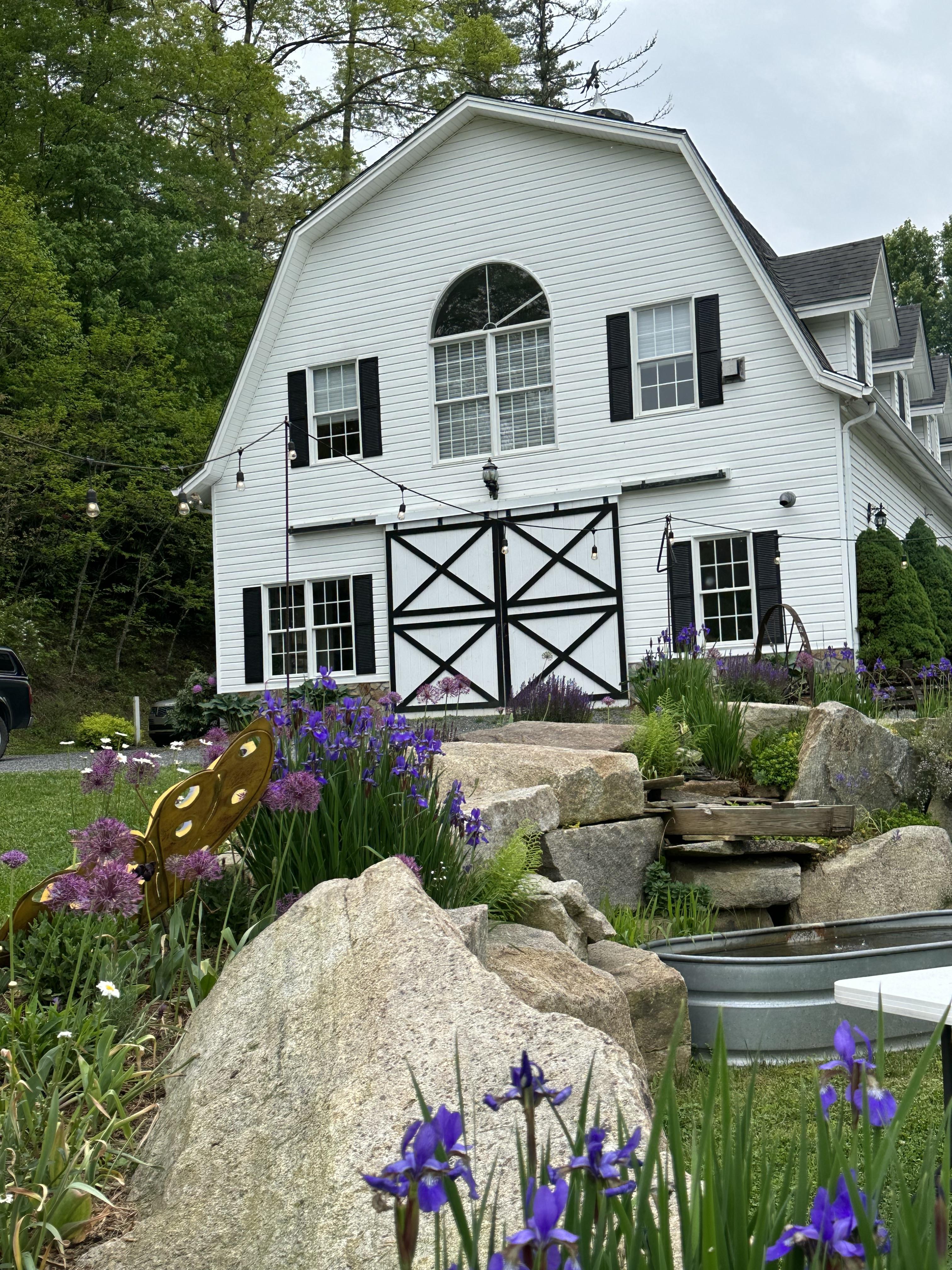 Nestled along the banks of the New River, the New River Escape is a dreamy haven for your wedding day. With a blend of indoor and outdoor charm, this enchanting venue offers a variety of ceremony sites surrounded by vibrant flower gardens, which provide the seasonal blooms for your wedding bouquet and arrangements. Guests can bask in the warmth of the fire pit, unwind in the rock garden, and soak in the serene beauty of the river, creating unforgettable memories in a peaceful, magical setting.