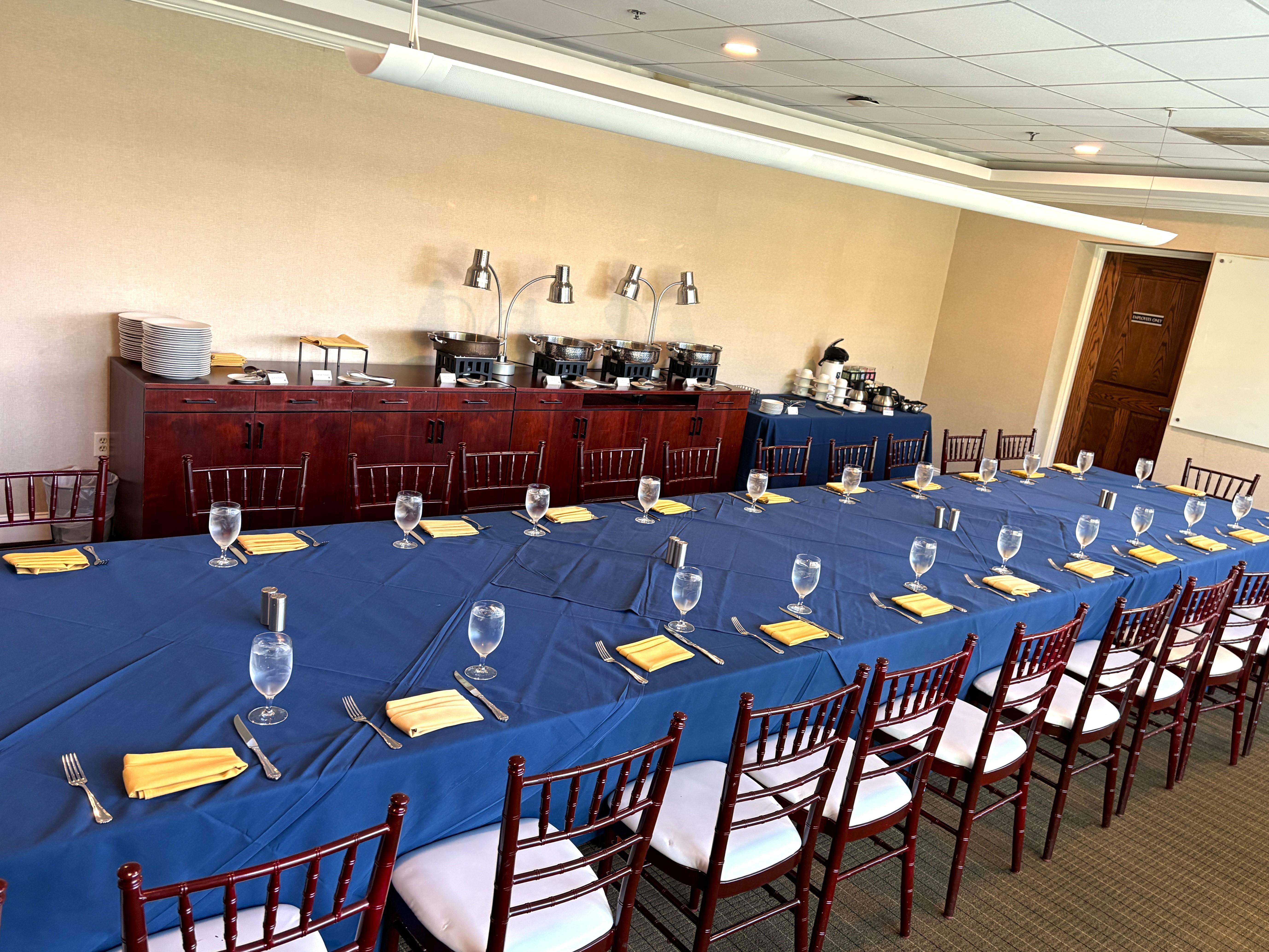 Featuring a boardroom-style table with full AV capabilities, the space comfortably accommodates up to 16 people for meetings. With abundant natural light and a sophisticated atmosphere, the room can seamlessly transform into an elegant, seated dinner for up to 22 guests, making it ideal for intimate corporate events, private dinners, or small celebrations. Attentive service and customizable arrangements ensure every event is both productive and memorable.