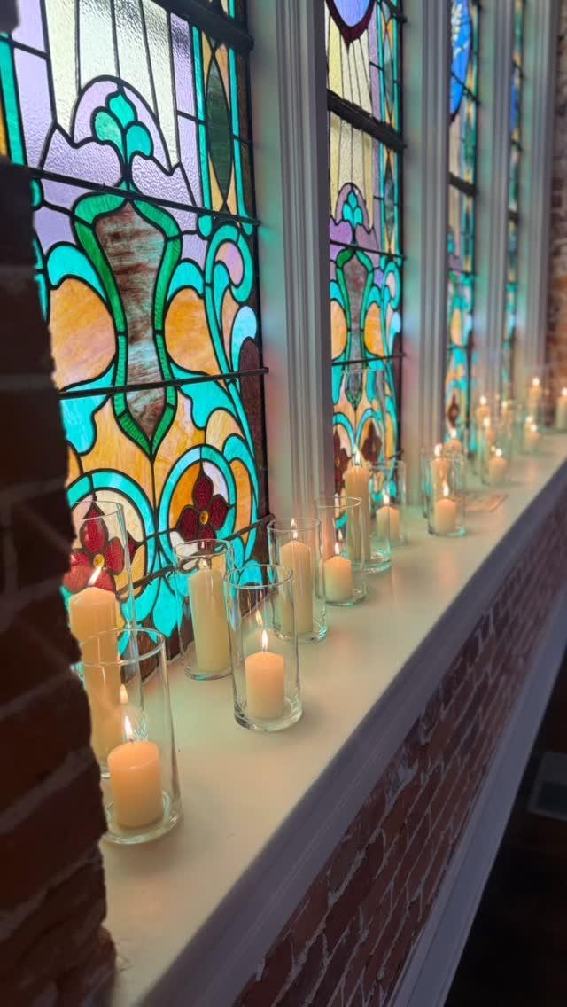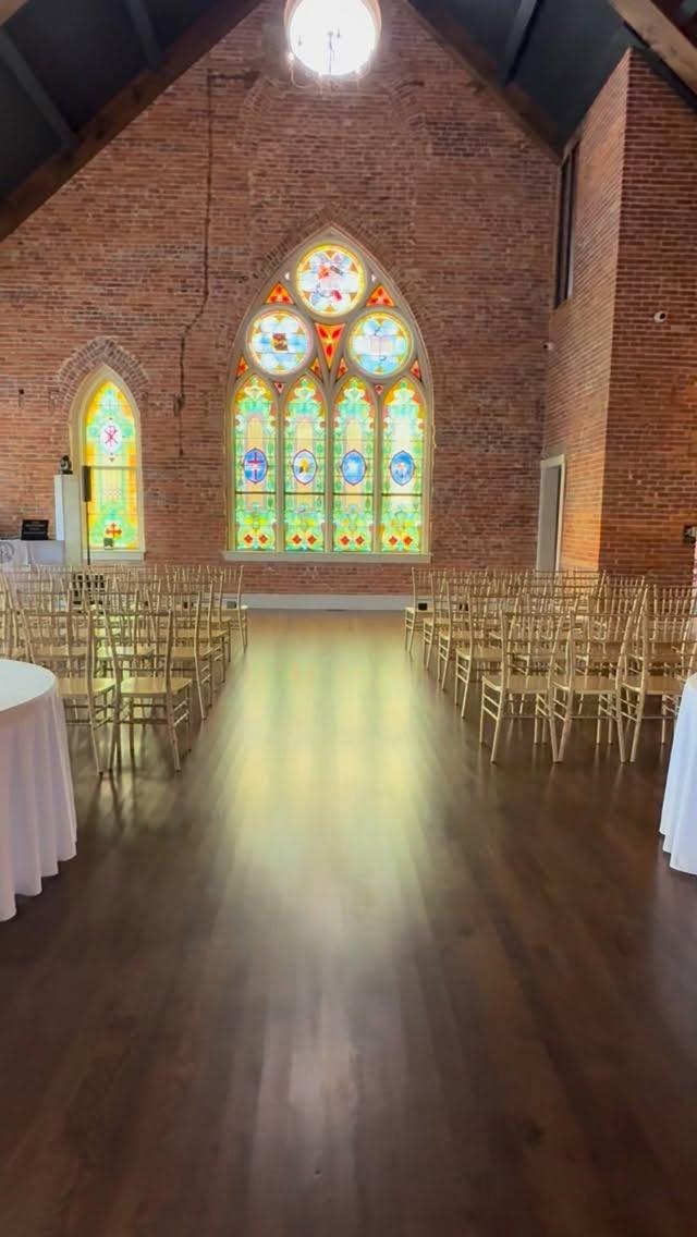 The Ballroom features approximately 3400 square feet of historic vibes! Boasting exposed brick, hardwood floors, and stunning stained-glass windows for the backdrop of your special day!