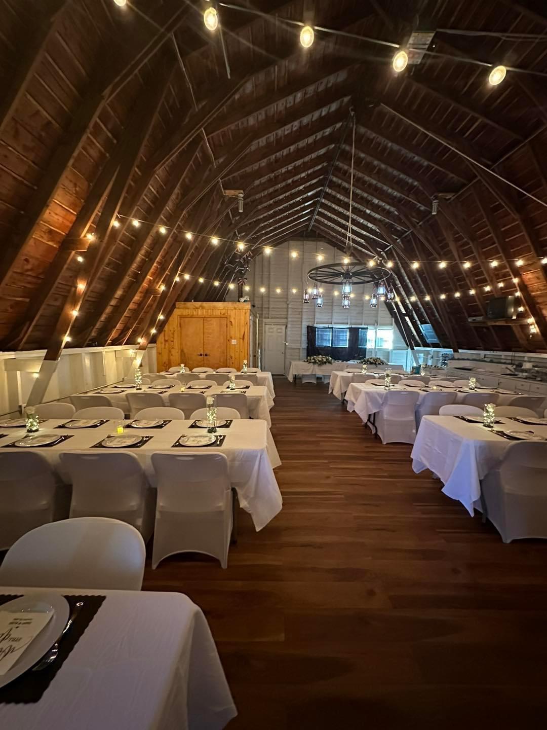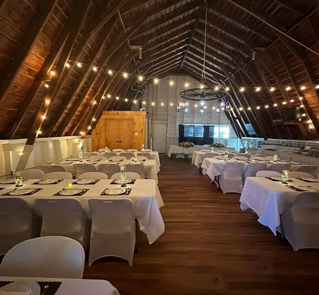 Rental includes a rustic indoor barn reception space, an outdoor ceremony area with scenic views, and an onsite bridal suite. Tables and seating for up to 200 guests are provided, along with indoor and outdoor lighting, power for vendors, and restroom accommodations. Couples enjoy full-day access with flexible vendor policies for catering and alcohol, plus onsite coordination assistance and rehearsal availability upon request.