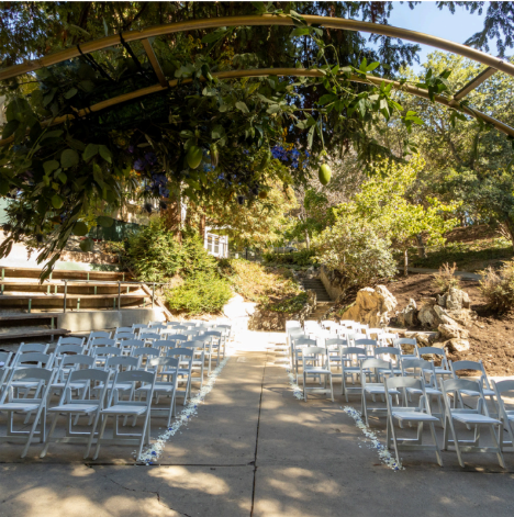 Our most popular ceremony venue, located in the heart of the park in a redwood grove; it is the perfect setting if you are looking for natural beauty. The patio can seat up to 120 guests with additional seating in the bleachers for 80 more guests.