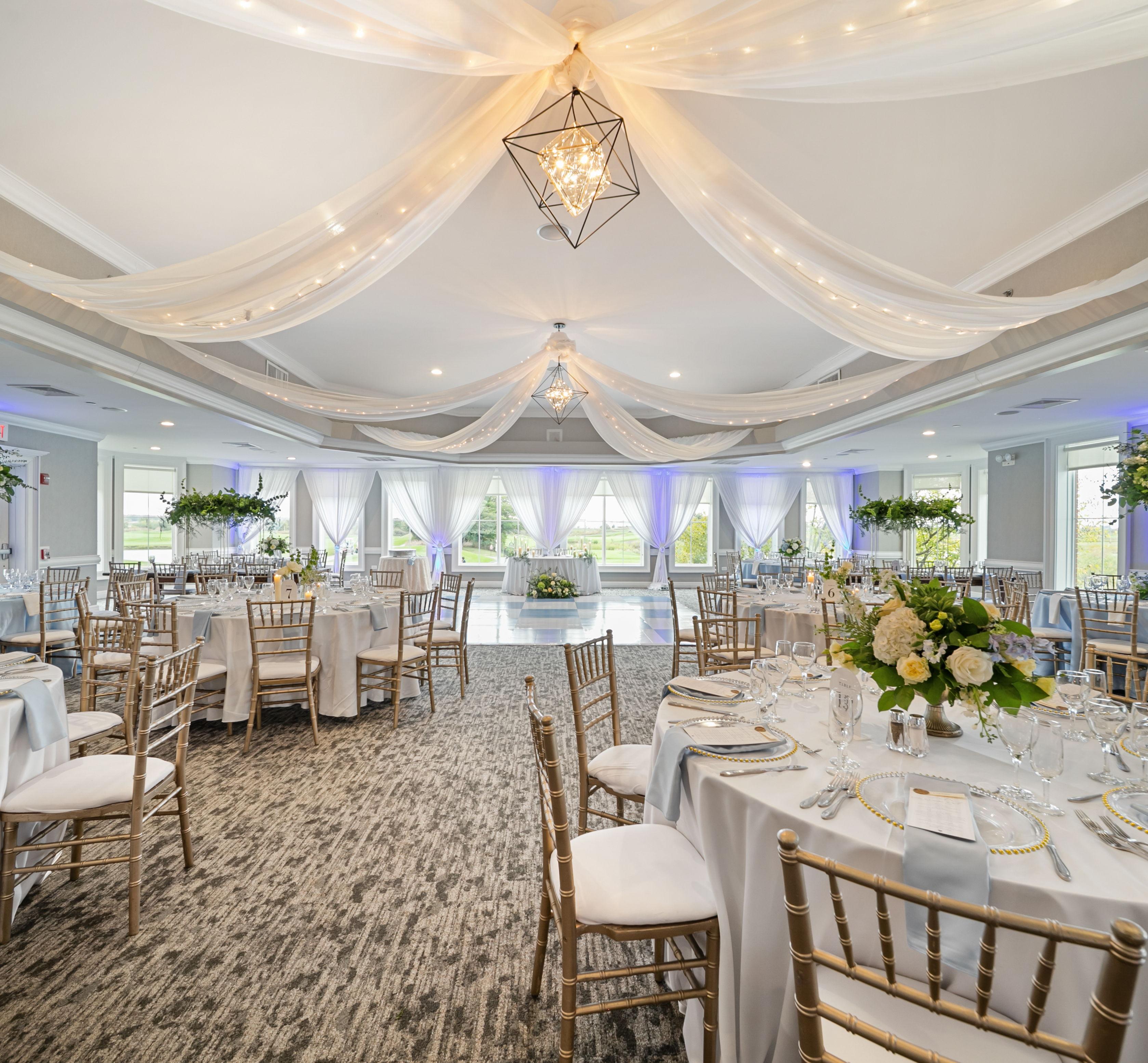 We have several room configurations to choose from, which can accommodate receptions of all sizes in a comfortable setting. The adjoining patio used for cocktail hour and beyond, offers guests a stunning view of our 9th and 18th holes, while relaxing in the secluded setting.