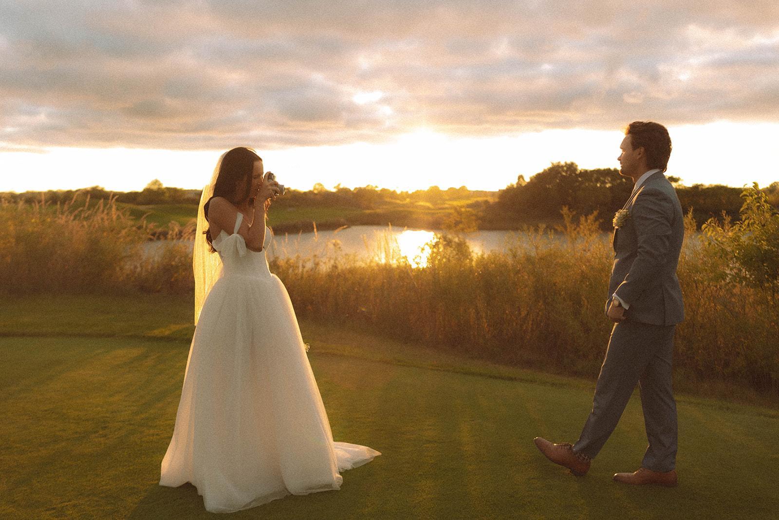 Our award winning banquet facility features floor to ceiling windows overlooking our beautiful, Scottish links-style golf course. Prairie Landing offers both indoor and outdoor ceremony settings, as well as indoor and outdoor cocktail space options. With our in-house event coordinators, full service catering and all-inclusive packages, every detail of planning is covered. If you are looking for an outdoor ceremony location, Prairie Landing has the perfect setting within steps of our main ballroom. We offer an elevated space on our practice facility tee box with a choice of the golf course or our historic clubhouse as the backdrop for your photos.