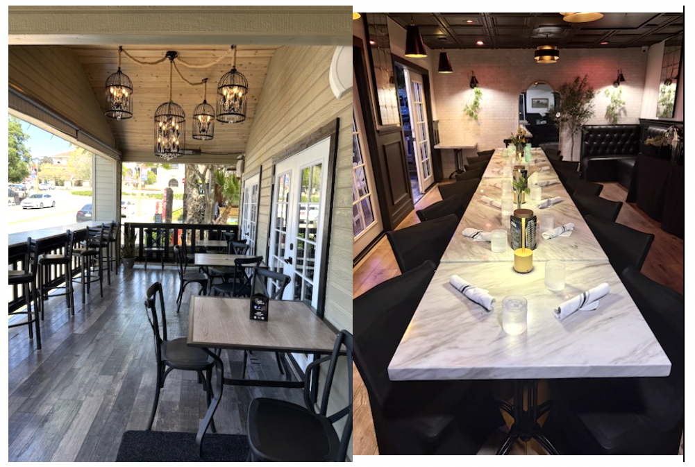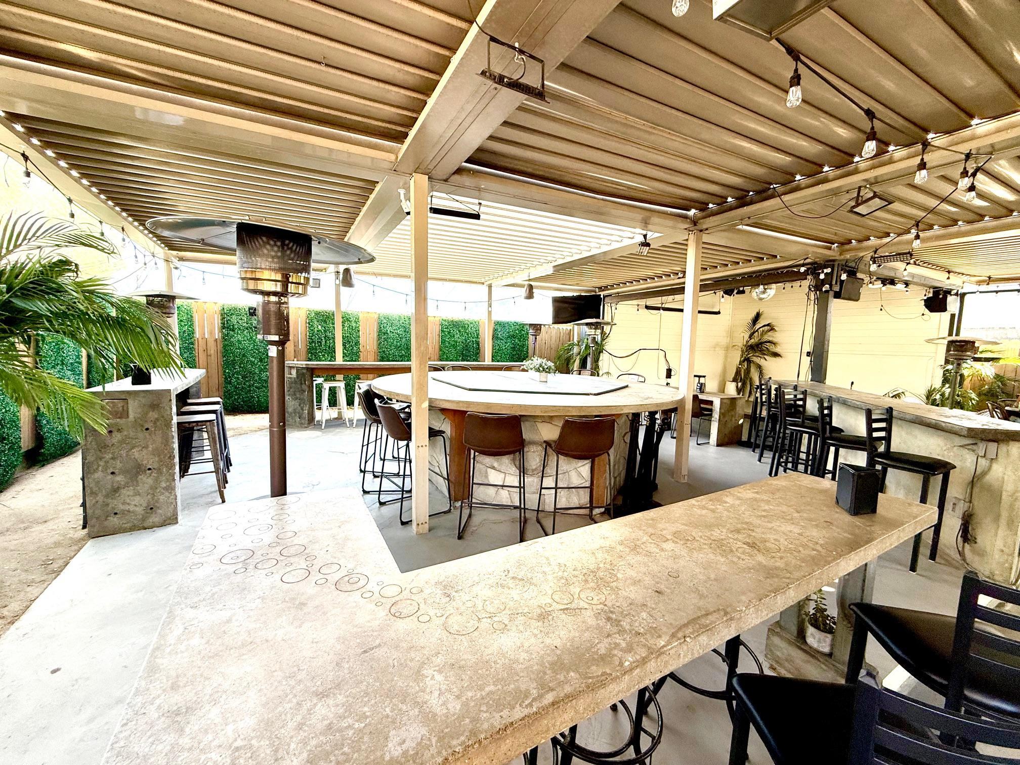 Our beautiful, covered, semi private back patio area offers ample space for buffets, small bites & sips, cocktail parties, welcome parties, rehearsal luncheons/dinners, wedding receptions, and after parties.