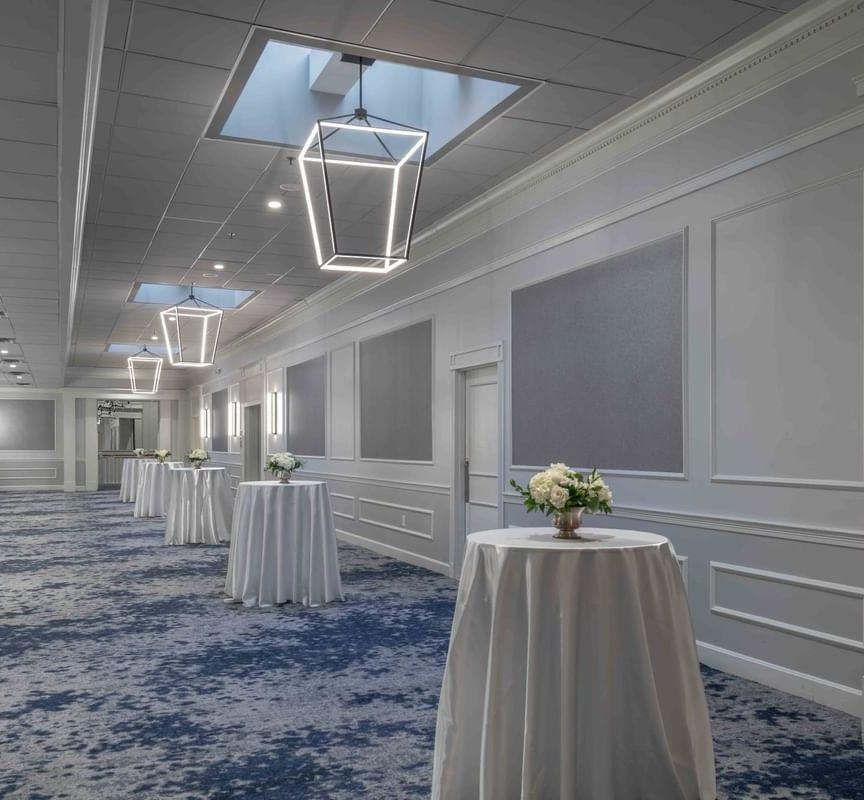 The Grand Ballroom serves as the crown jewel of the Renaissance Framingham, offering a majestic setting for large-scale wedding receptions and banquets. This newly renovated space features soaring ceilings, contemporary lighting, and a neutral color palette that allows your unique wedding vision to take center stage. The expansive layout provides a seamless flow for dinner and dancing, while the adjacent pre-function areas offer a sophisticated backdrop for cocktail hours and mingling before the main event.