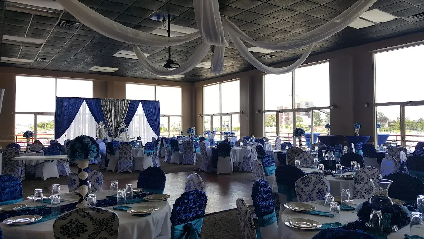 The newly renovated members-only clubhouse serves as a refined setting for celebrations, featuring modern dressing rooms and dedicated event spaces designed for comfort and style. Step outside to the sprawling riverfront grounds, where manicured lawns meet the Detroit River’s edge, offering an American Heritage River backdrop for ceremonies and cocktail hours. With access to seasonal amenities like the pool and jacuzzi, and the option for dramatic boat-side photos, the marina provides a dynamic environment for everything from engagement parties to grand wedding receptions.