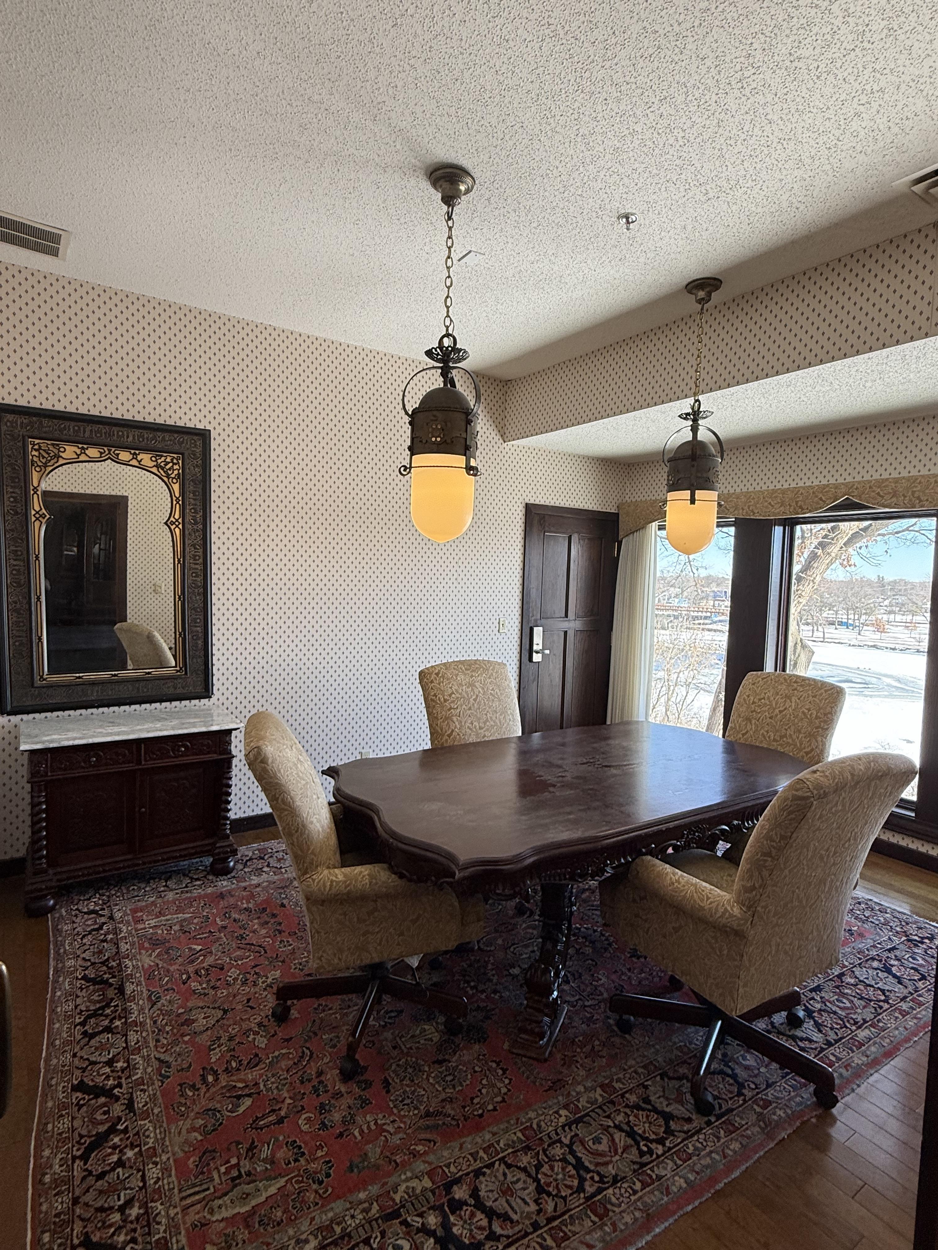 Unique doors, elegant fireplace, and river views make this space perfect for any type of event.