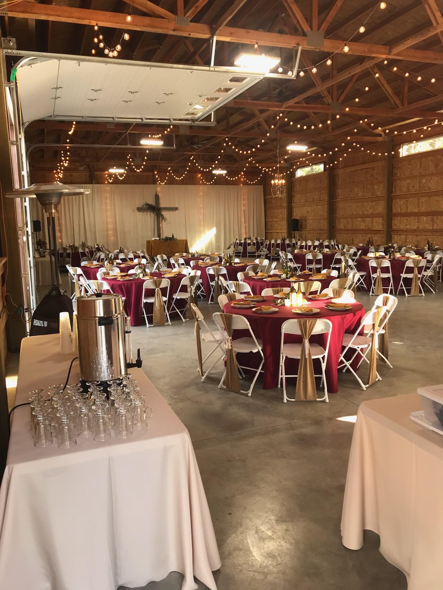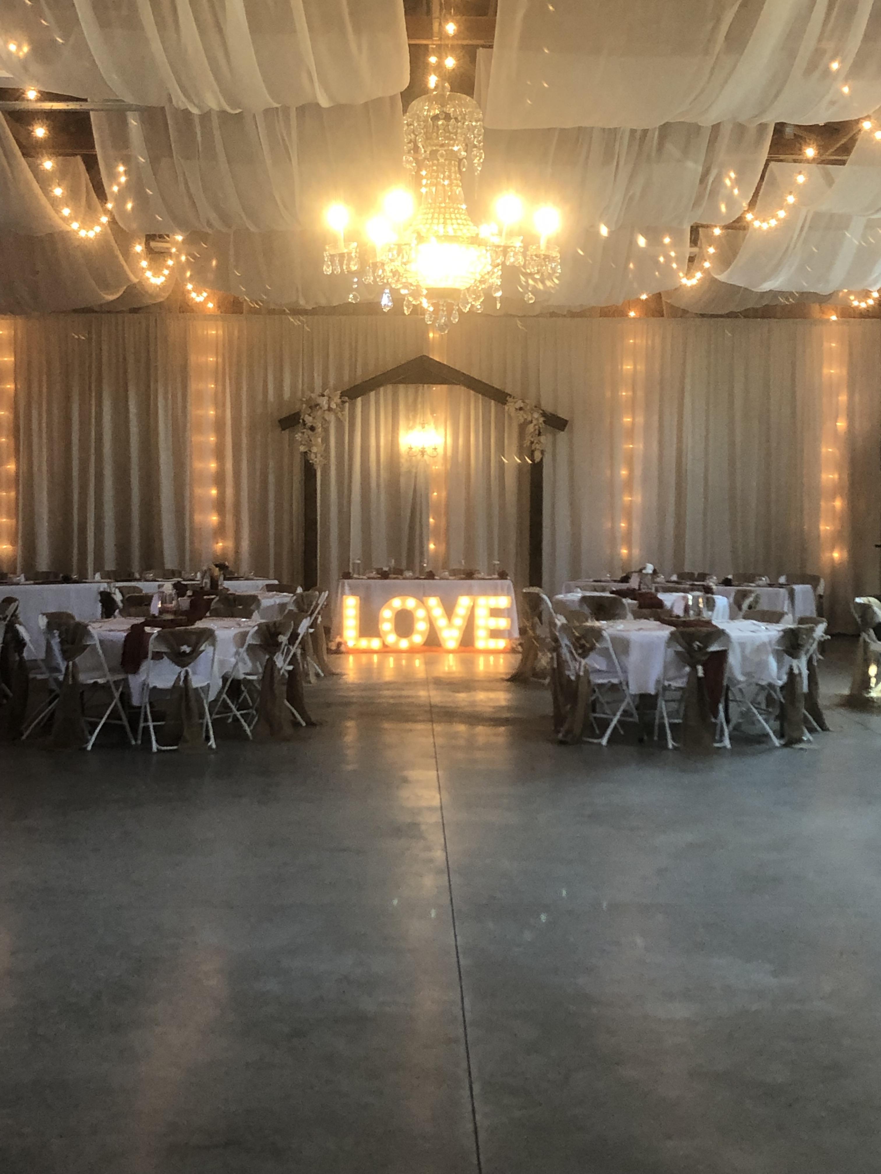 An exquisite ceremony or reception (4000 square foot) heated barn with copious amount of string lights and a breathtaking chandelier all with light dimming capabilities. A Photo Booth, DJ/MC area, excellent sound system for non stop dancing with a catering room for continuous food and drinks. Let’s not forget the Photo Booth area for preserving the memories made that night, for years to come.
