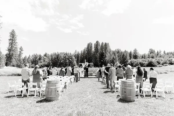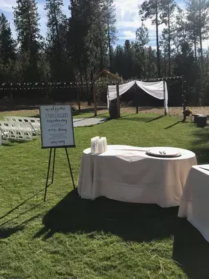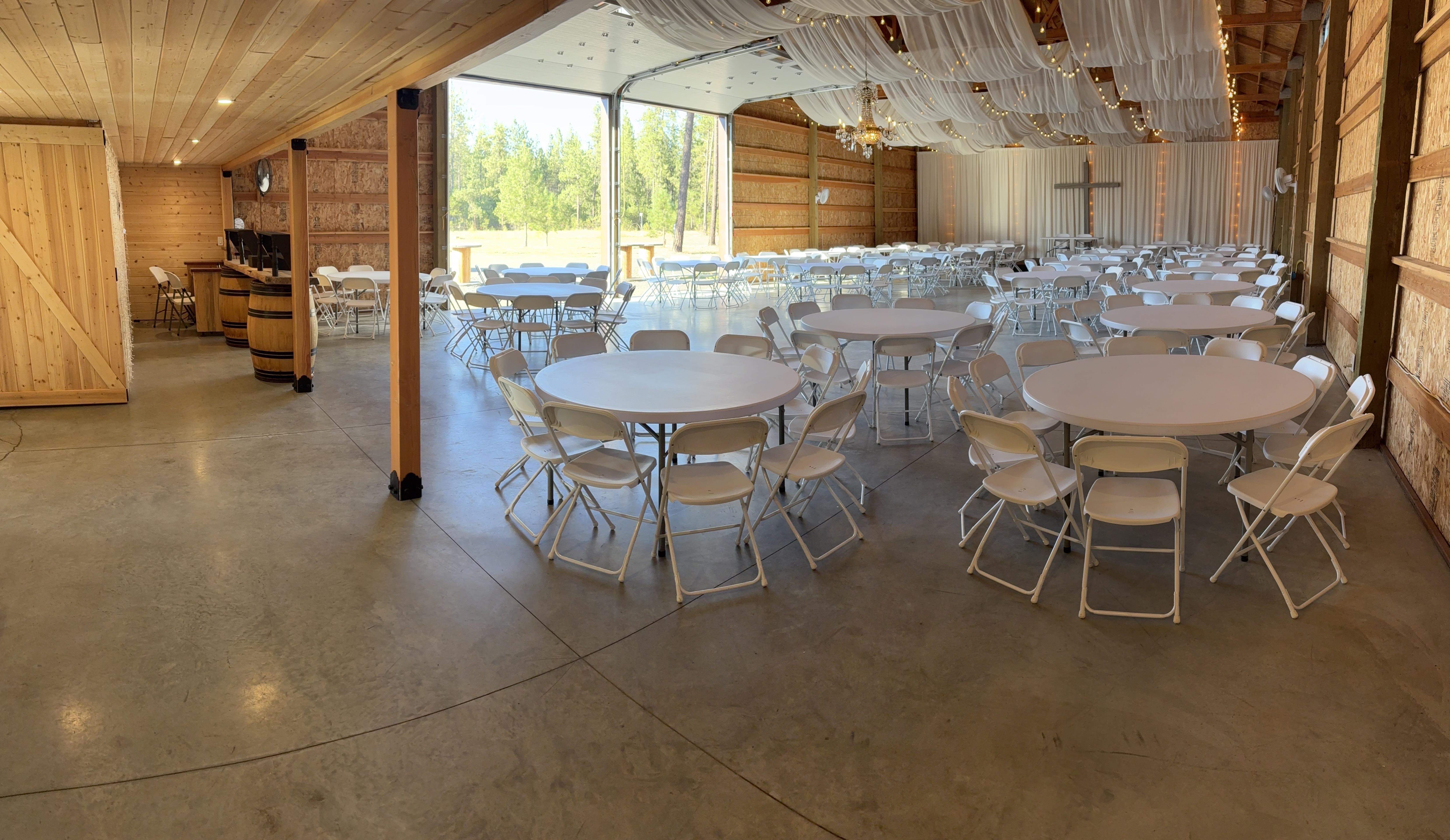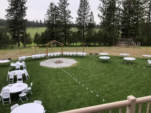 Rustic Meadows has 10 acres of spacious country setting with pine trees, aspens, a large meadow and a 4000 square foot heated barn for that perfect country setting. We want you to experience the family atmosphere and to make you feel like you just came home. So relax and enjoy the evening you've always dreamed about. We have three locations for your Ceremonies or Receptions. The most popular is the groomed meadow that includes a wonderful backdrop of Aspen trees and Timothy grass. The second place is our beautiful oversized backyard with string lights, pine trees, rolling hills and blue skies. The third, but not least, is the 4000 square foot barn with enough room for 250 guests, catering, Photo Booth and DJ area. All of these locations are set and ready for you to decorate any way you wish. The Rustic Meadows team will always be around to help you with the set-up, take down and, of course, helping you to make the best memories ever.