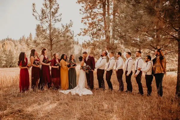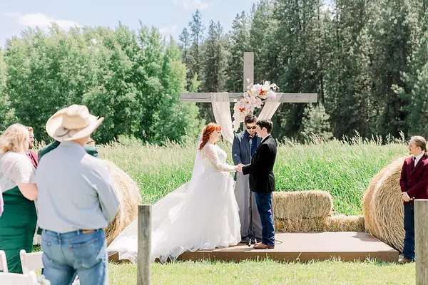 Your vows framed by towering pines and golden grass.
