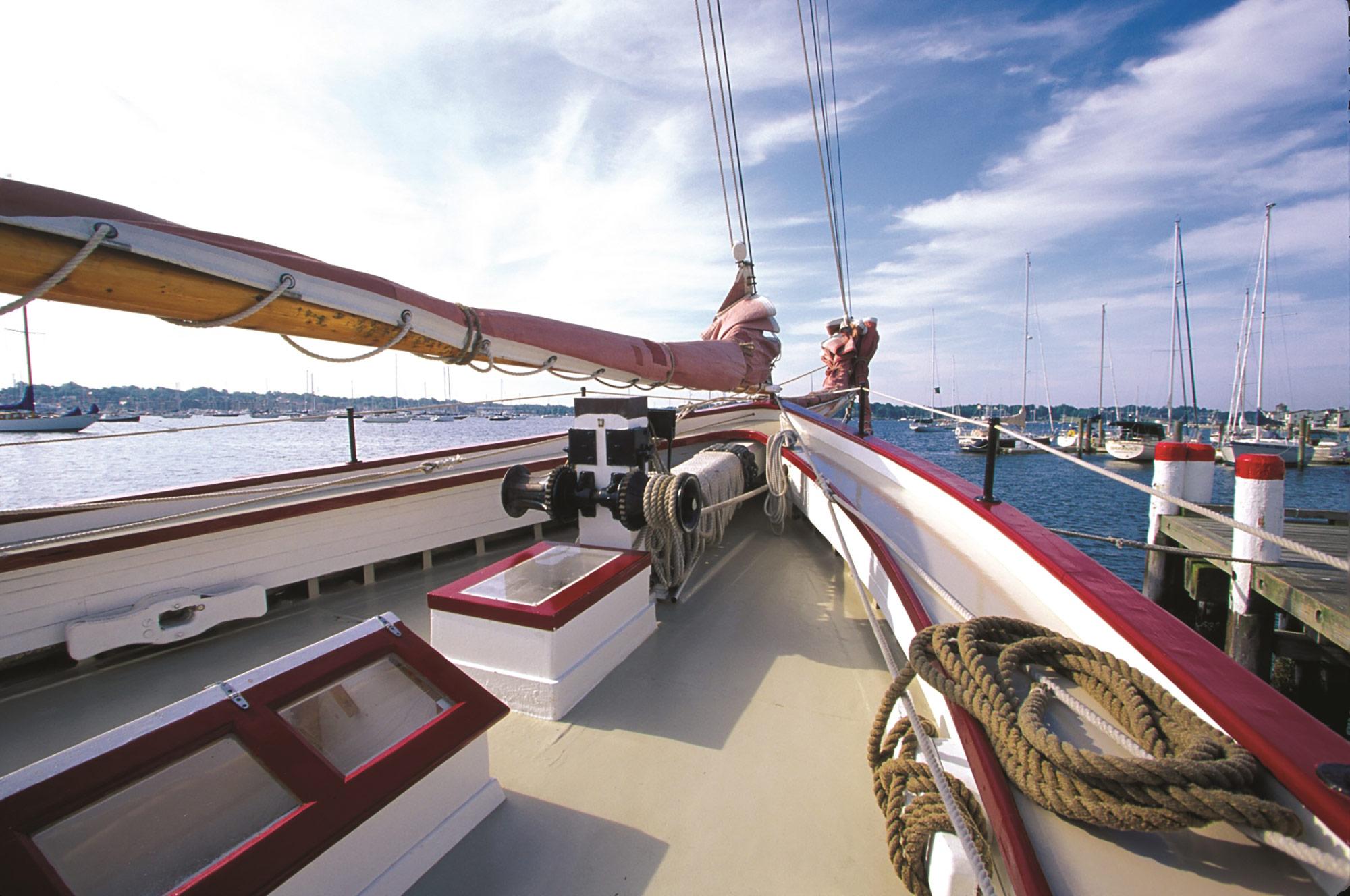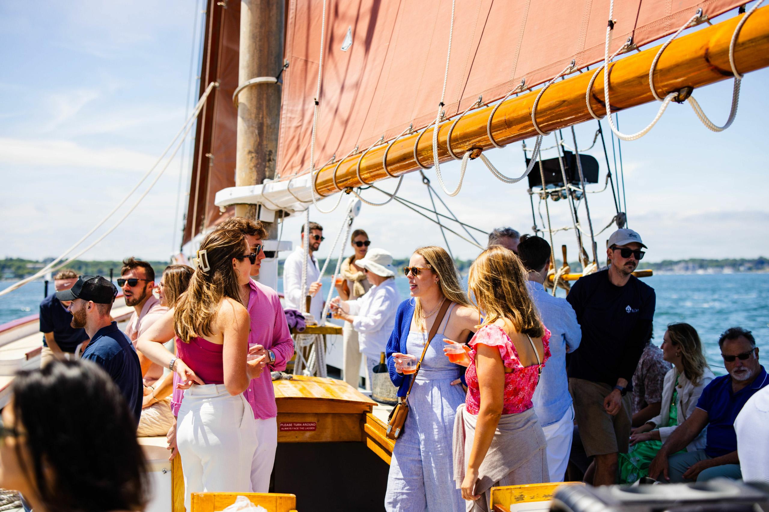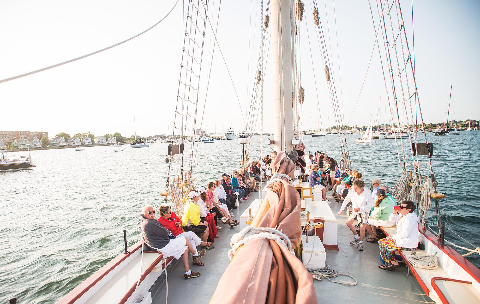 Elevate your wedding weekend aboard the Schooner Aurora, a majestic 101-foot tall ship that captures the spirit of Newport’s golden age of sailing. Perfect for pre-wedding welcome parties or "anchors aweigh" post-wedding brunches, this classic vessel offers a refreshing alternative to traditional banquet halls. Whether you’re hosting a sunset rehearsal sail or a casual lobster boil on the harbor, the Aurora provides a breathtaking backdrop of Narragansett Bay. It’s an unforgettable way to greet your guests as they arrive in Rhode Island or to bid them a scenic farewell before the honeymoon begins.