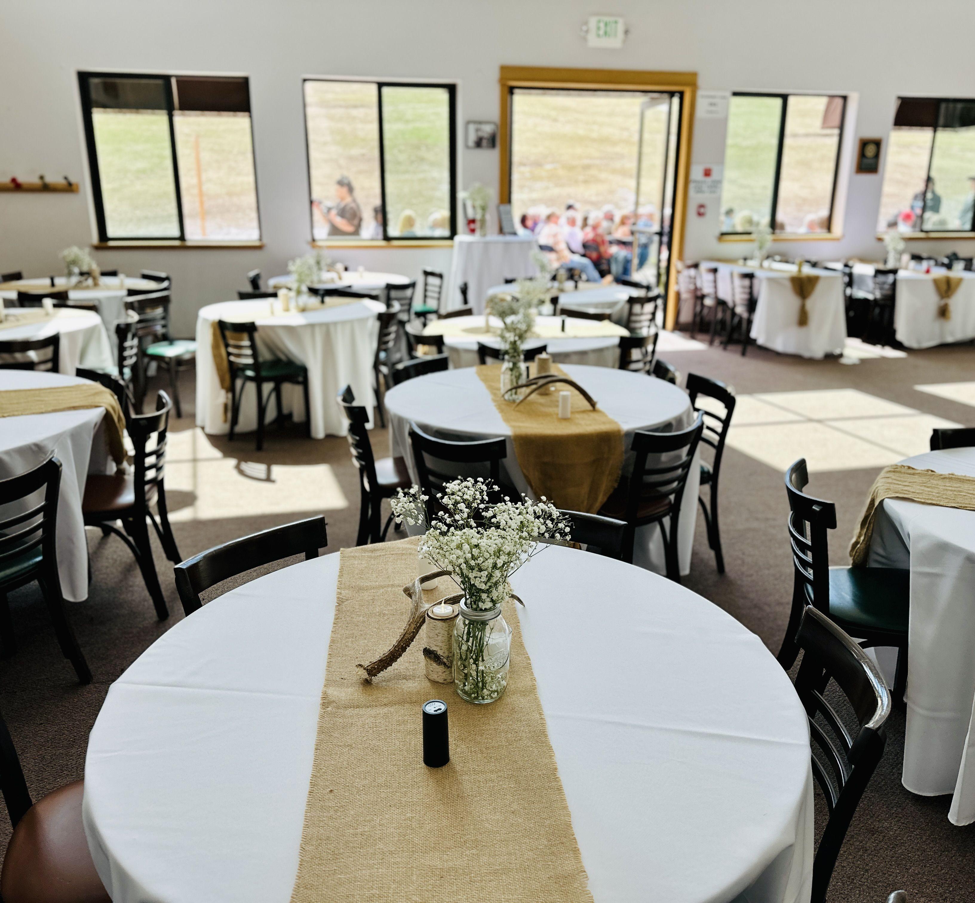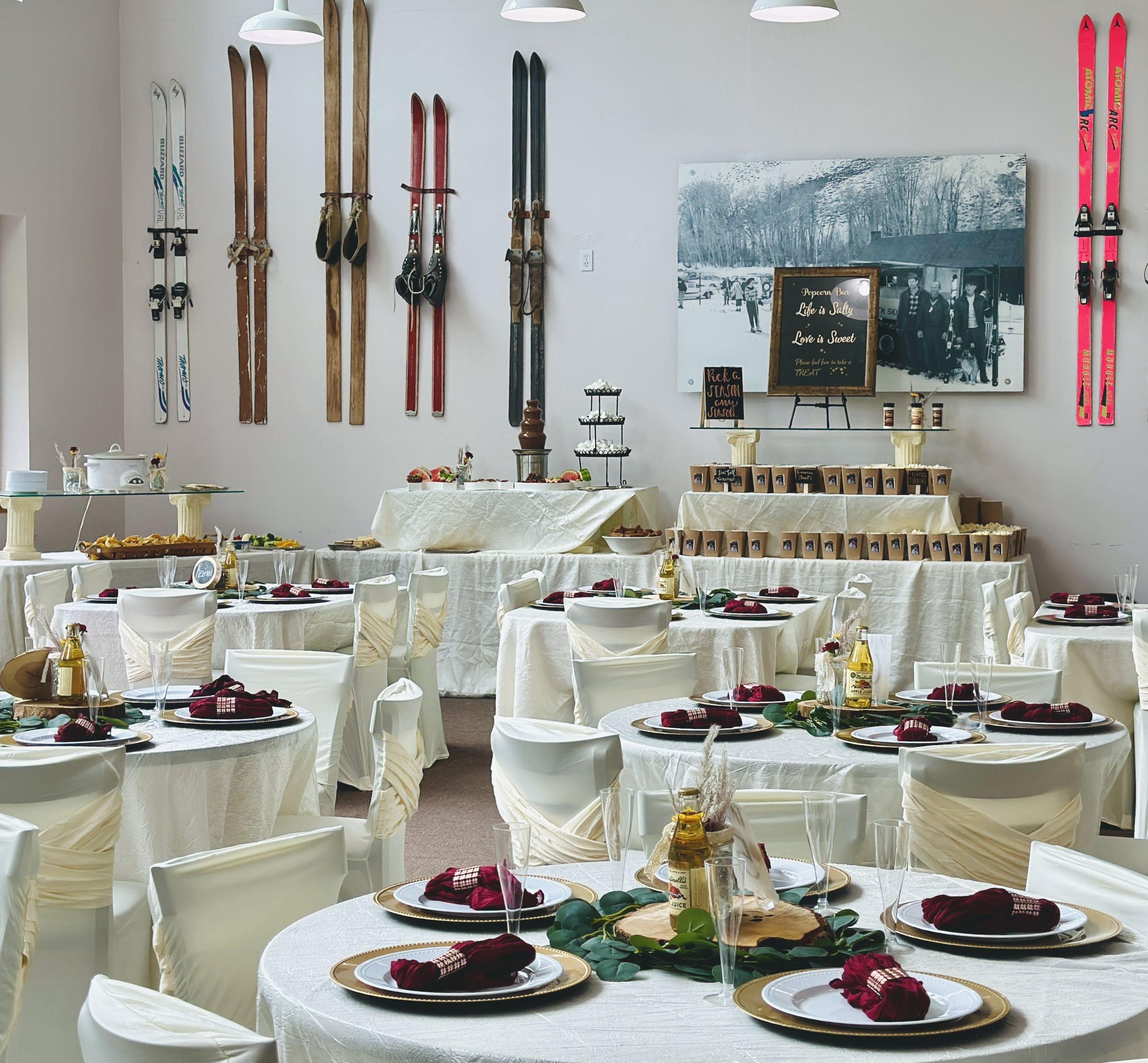 - Full Bar - Commercial Kitchen - 2 TVs for photo album play-through - Tables and Chairs